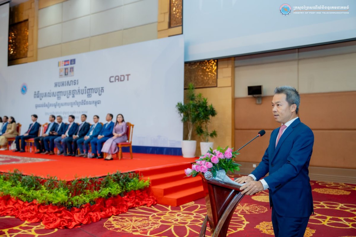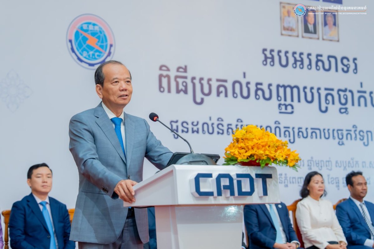 ថ្លែងក្នុងពិធីនេះ ឯកឧត្តមរដ្ឋមន្រ្តី បានលើកឡើងអំពីសារៈសំខាន់នៃការចាប់យកជំនាញបច្ចេកវិទ្យាឌីជីថល ក្នុងអាជីពការងារ ដោយសារបច្ចេកវិទ្យាឌីជីថលបាននិងកំពុងផ្សារភ្ជាប់យ៉ាងជិតស្និទ្ធនឹងដំណើរការការងារ ជីវភាពរស់នៅ និងការវិវត្តនៃសេដ្ឋកិច្ចនិងសង្គម។ លើសពីនេះ ឯកឧត្តមរដ្ឋមន្រ្តី ក៏បានគូសរំលេចអំពីមោទកភាពនៃស្នាដៃកូនខ្មែរ ដែលជាមន្រ្តីបច្ចេកទេសនៃ ក.ប.ទ. ក្នុងការអភិវឌ្ឍថ្នាល verify.gov.kh ដែលជាថ្នាលរបស់រាជរដ្ឋាភិបាល និងត្រូវបានទទួលស្គាល់ជាអន្តរជាតិផងដែរ។