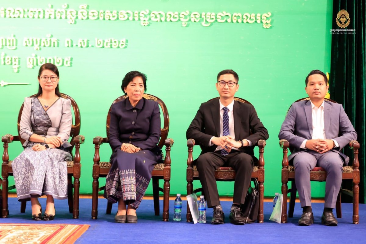 នៅព្រឹកថ្ងៃទី២ ខែធ្នូ ឆ្នាំ២០២៥ ឯកឧត្តម យក់ ប៊ុនណា រដ្ឋលេខាធិការប្រចាំការក្រសួងមុខងារសាធារណៈ តំណាងដ៏ខ្ពង់ខ្ពស់ ឯកឧត្តម ហ៊ុន ម៉ានី ឧបនាយករដ្ឋមន្រ្តី រដ្ឋមន្រ្តីក្រសួងមុខងារសាធារណៈ បានអញ្ជើញជាអធិបតីបើកវគ្គបណ្តុះបណ្តាលស្តីពី «វិធីសាស្រ្តនៃការធ្វើអង្កេតលើការយល់ឃើញរបស់ប្រជាពលរដ្ឋ លើប្រសិទ្ធភាពនិងគុណភាពនៃការផ្តល់សេវាសាធារណៈពាក់ព័ន្ធនឹងសេវារដ្ឋបាលជូនប្រជាពលរដ្ឋ» ដល់មន្រ្តីអនុវត្តគម្រោង។