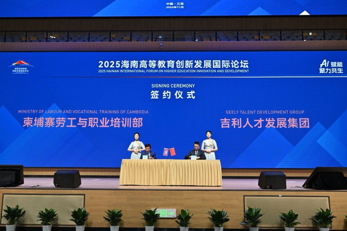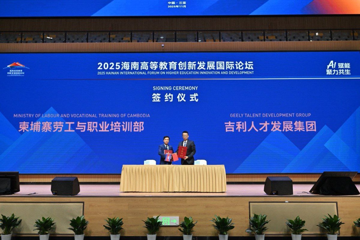 ចិន៖ ក្រុមហ៊ុន Geely Talent Development Group ដែលជាក្រុមហ៊ុនបុត្រសម្ព័ន្ធមួយក្នុងចំណោមក្រុមហ៊ុនបុត្រសម្ព័ន្ធទាំង៦ នៃក្រុមហ៊ុន Geely Holding Group បានចាប់ផ្តើមធ្វើកិច្ចសហប្រតិបត្តិការជាមួយក្រសួងការងារ និងបណ្តុះបណ្តាលវិជ្ជាជីវៈ ដោយអនុស្សរណៈនៃការយោគយល់គ្នា (MoU) ដែលចុះហត្ថលេខានៅពេលនេះ មានគោលបំណងបង្កើតនូវក្របខណ្ឌនៃកិច្ចសហប្រតិបត្តិការក្នុងភាពជាដៃគូសាធារណៈ និងឯកជនដើម្បីលើកកម្ពស់គុណភាព និងគំនិតច្នៃប្រឌិតនៅក្នុងការអប់រំបណ្ដុះបណ្ដាលបច្ចេកទេស និងវិជ្ជាជីវៈ តាមរយៈការប្រើប្រាស់បញ្ញាសប្បនិម្មិត (AI)។
