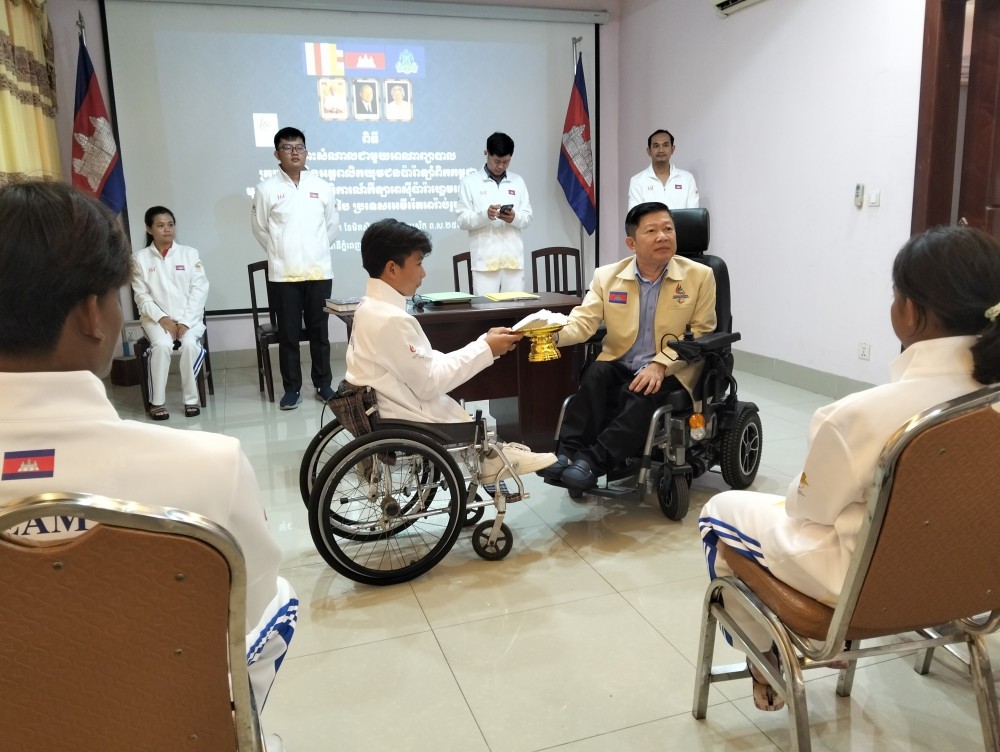 អត្តពលិកពិការទទួលបានការលើកទឹកចិត្ត មុនចេញប្រកួតកីឡាយុវជនអាស៊ីប៉ារ៉ាហ្គេម នៅប្រទេសអារ៉ាប់រួម