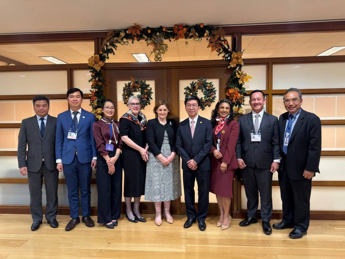ឯកឧត្តមរដ្ឋលេខាធិការ រួមជាមួយតំណាងមកពីក្រសួងការងារនិងបណ្តុះបណ្តាលវិជ្ជាជីវៈ និងមូលនិធិអភិវឌ្ឍន៍ជំនាញ (Skill Development Fund) បានជួបសម្តែងការគួរសម និងពិភាក្សាដោយឡែកជាមួយ លោកស្រី Rachel Thompson នាយកប្រតិបត្តិនៃធនាគាអភិវឌ្ឍន៍អាស៊ីប្រចាំស្នាក់ការកណ្ដាល និងលោកស្រី Jasmine Siddiqi នាយិកាធនាគាអភិវឌ្ឍន៍អាស៊ីប្រចាំនៅកម្ពុជា។ នៅក្នុងជំនួបនេះ ការពិភាក្សាបានធ្វើឡើងពាក់ព័ន្ធនឹងការពង្រឹងមូលធនមនុស្ស និងសមត្ថភាពប្រកួតប្រជែងនៅកម្ពុជា ដោយផ្តោតលើការប្រែក្លាយឯកសារយុទ្ធសាស្រ្តស្តីពីភាពជាដៃគូរវាងកម្ពុជានិងធនាគារអភិវឌ្ឍន៍អាស៊ី (Country Partnership Strategy) ដែលបានអនុម័តនៅឆ្នាំ ២០២៤ ទៅជាការអនុវត្តប្រកបដោយប្រសិទ្ធភាព និងលទ្ធផល តាមរយៈការដោះស្រាយកង្វះខាតជំនាញ ដោយផ្តោតលើ (i) ជំនាញបច្ចេកទេស និងចំណេះដឹងដែលកម្លាំងពលកម្មត្រូវការ ដើម្បីអាចធ្វើឱ្យមានការផ្លាស់ប្តូរឧស្សាហកម្មប្រកបដោយនិរន្តរភាព និងគិតគូរពីបរិស្ថាន; (ii) ពង្រឹងប្រព័ន្ធអេកូសម្រាប់ការអភិវឌ្ឍជំនាញ; (iii) គាំទ្រដល់ការបង្កើនលទ្ធផលសិក្សា និងពង្រឹងការវាយតម្លៃនៅតាមសាលារៀន និង (iv) ពង្រឹងទំនាក់ទំនងរវាងការអប់រំមធ្យមសិក្សា ទៅនឹងការអប់រំឧត្តមសិក្សា។