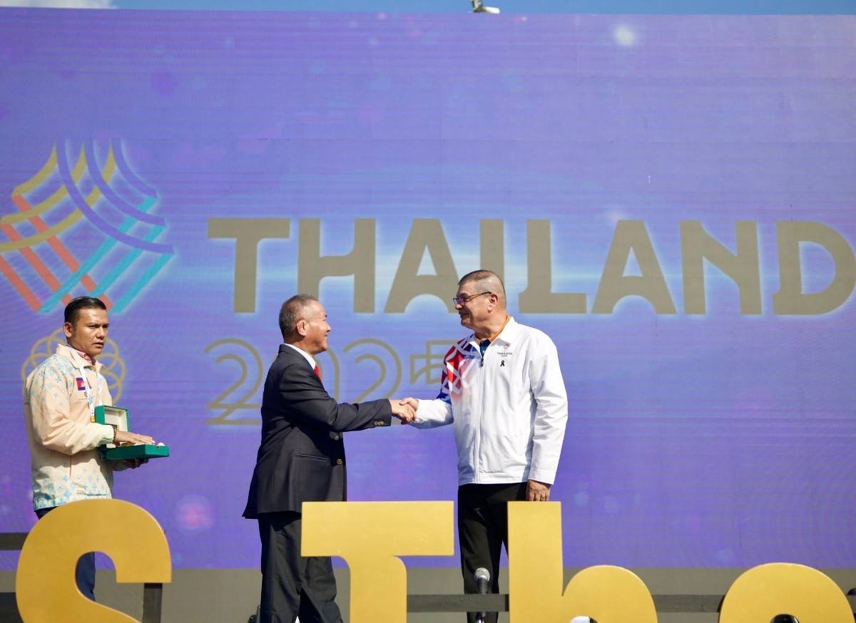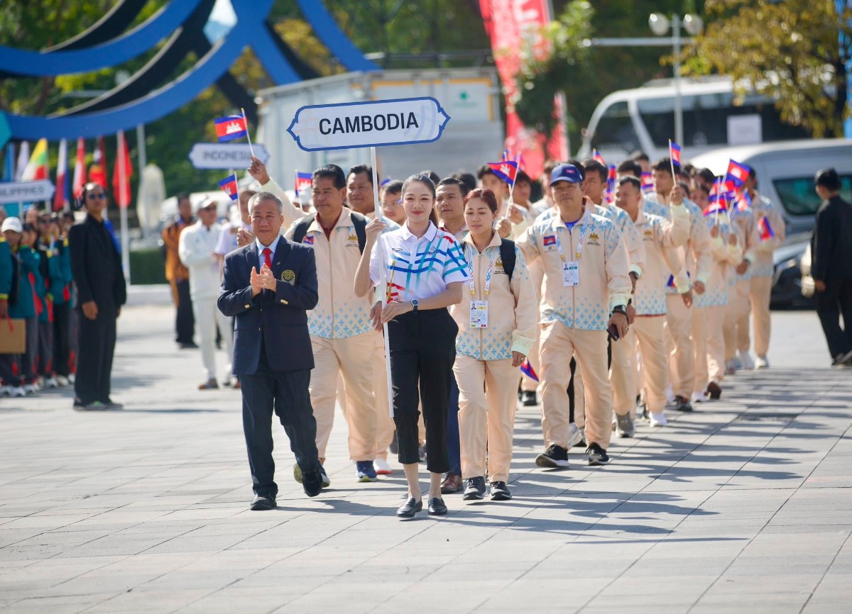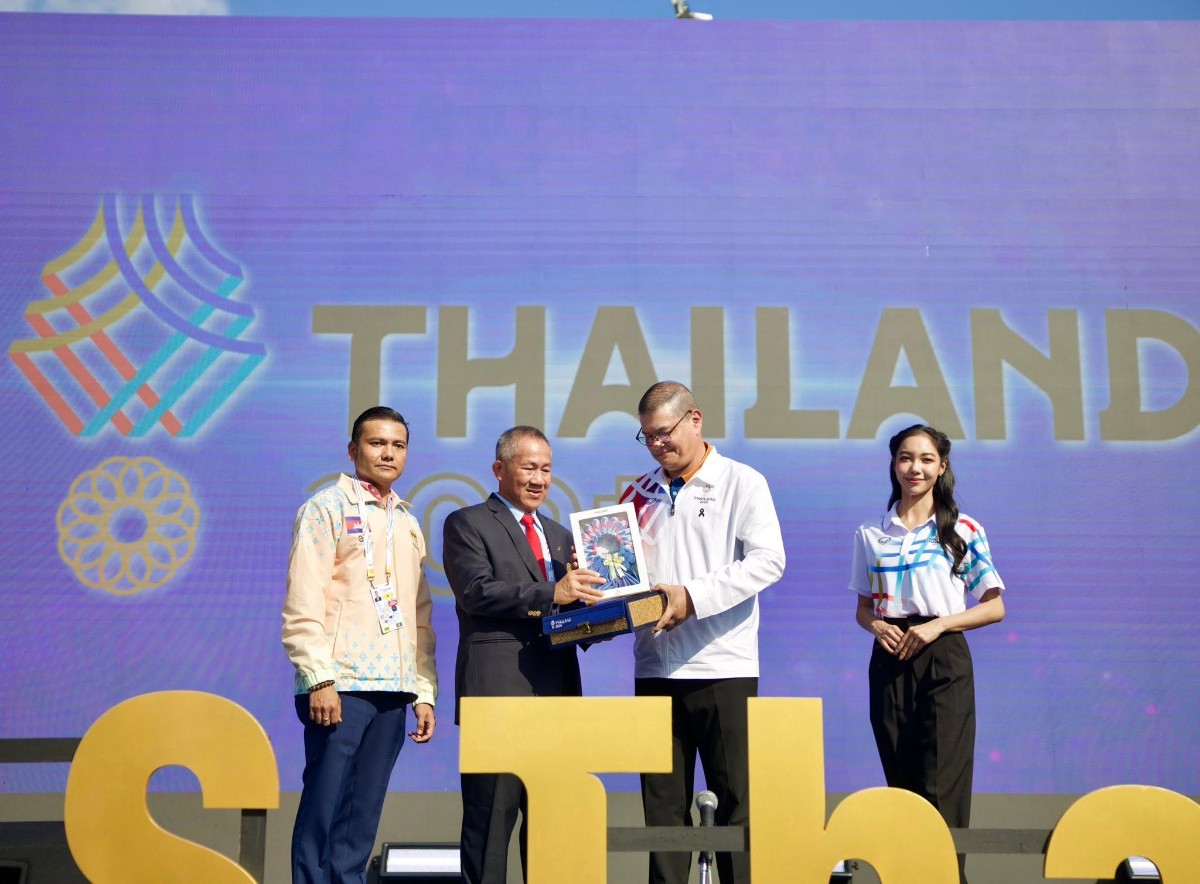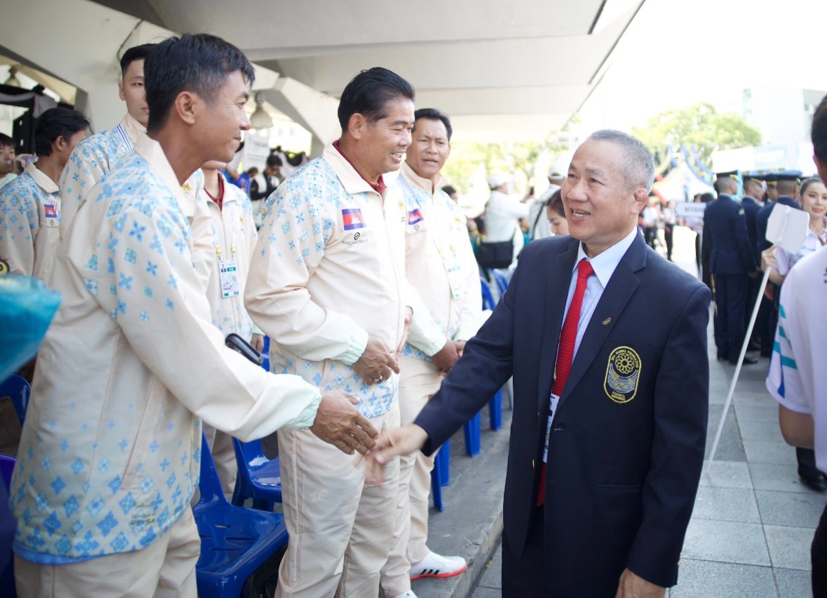 នារសៀលថ្ងៃទី៨ ខែធ្នូ ឆ្នាំ២០២៥ ប្រតិភូគ្រូបង្វឹក កីឡាករកីឡាការិនីកម្ពុជា ដឹកនាំដោយ ឯកឧត្តម វ៉ាត់ ចំរើន រដ្ឋលេខាធិការ ក្រសួងអប់រំយុវជននិងកីឡា និងជាអគ្គលេខាធិការគណៈកម្មាធិការជាតិអូឡាំពិកកម្ពុជា និងឯកឧត្តម ប៉ុន សុខ អគ្គនាយកនៃអគ្គនាយកដ្ឋានកីឡា បានចូលរួមគោរពទង់ជាតិ ក្នុងព្រឹត្តិការណ៍កីឡាស៊ីហ្គេម លើកទី៣៣ ដែលប្រទេសថៃទទួលធ្វើជាម្ចាស់ផ្ទះ។