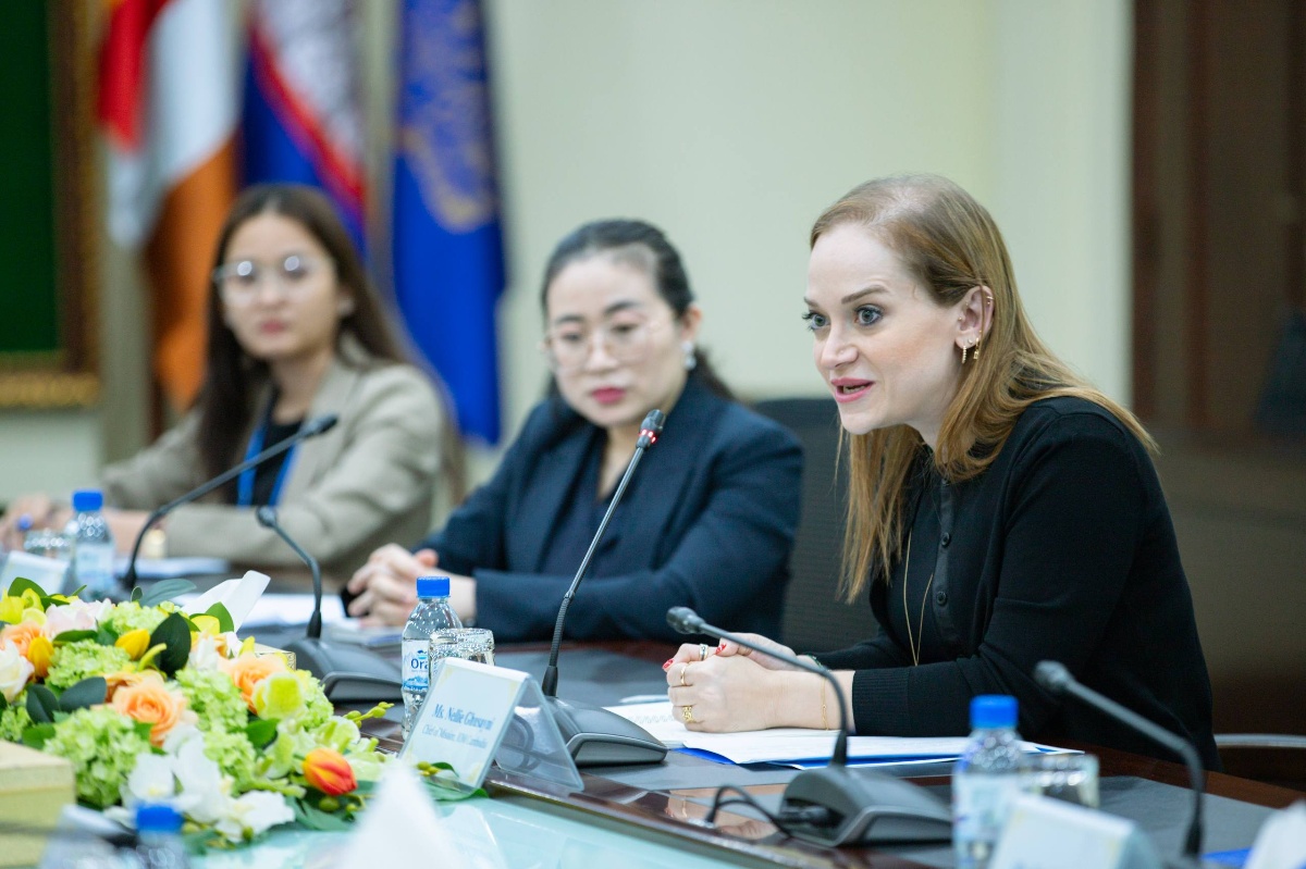 នៅព្រឹកថ្ងៃទី១១ ខែធ្នូ ឆ្នាំ២០២៥ នេះ ឯកឧត្តម ហេង សួរ រដ្ឋមន្រ្តីក្រសួងការងារ និងបណ្តុះបណ្តាលវិជ្ជាជីវៈ បានអនុញ្ញាតឱ្យលោកស្រី Nellie Ghusayni ប្រធានបេសកកម្មរបស់អង្គការអន្តរជាតិទេសន្តរប្រវេសន៍ (IOM) ប្រចាំនៅកម្ពុជា ជួបពិភាក្សាការងារ ដោយជំនួបនេះផ្តោតលើការគ្រប់គ្រង និងការផ្តល់ការយកចិត្តទុកដាក់បន្ថែមទៀតក្នុងការជួយគាំពារដល់ពលករទេសន្តរប្រវេសន៍ ជាពិសេសអតីតពលករខ្មែរដែលវិលត្រឡប់មកពីប្រទេសថៃ។