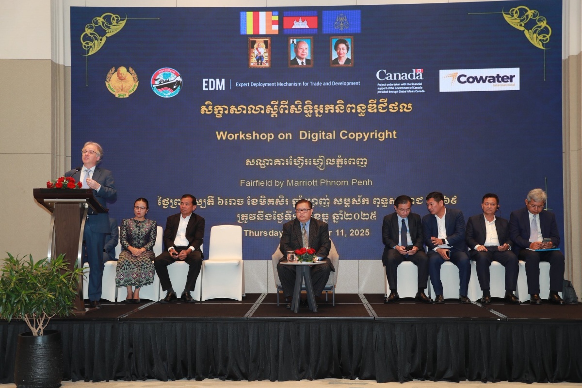 ថ្ងៃព្រហស្បតិ៍ ទី១១ ខែធ្នូ ឆ្នាំ២០២៥ នេះ ឯកឧត្តម ឡុង ប៉ុណ្ណាស៊ីរីវត្ថ រដ្ឋលេខាធិការ តំណាងដ៏ខ្ពង់ខ្ពស់របស់លោកជំទាវបណ្ឌិតសភាចារ្យរដ្ឋមន្ត្រីក្រសួងវប្បធម៌និងវិចិត្រសិល្បៈ ក្រោមជំនួយបច្ចេកទេសពីគម្រោង Expert Deployment Mechanism for Trade and Development (EDM) ស្តីពី កម្មសិទ្ធិបញ្ញារបស់ប្រទេសកាណាដា បានរៀបចំសិក្ខាសាលា ស្តីពី “សិទ្ធិអ្នកនិពន្ធឌីជីថល” នៅសណ្ឋាគារហ្វ៊ែរហ្វៀលភ្នំពេញ Fairfield by Marriott Phnom Penh ។