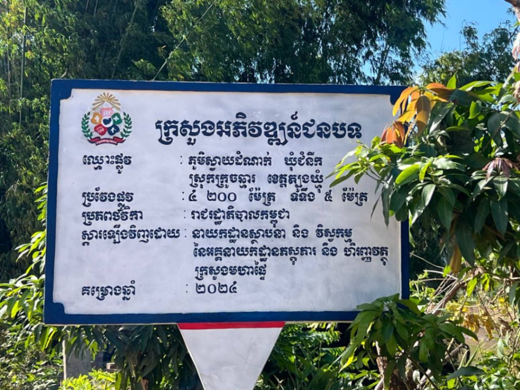 ឯកឧត្តម ជី ស៊ីថា រដ្ឋលេខាធិការ ក្រសួងអភិវឌ្ឍន៍ជនបទ នៅថ្ងៃទី១២ ខែធ្នូ ឆ្នាំ២០២៥នេះ បានដឹកនាំគណៈកម្មការអន្តរ ក្រសួងរួមមាន ក្រសួងអភិវឌ្ឍន៍ជនបទ និងក្រសួងសេដ្ឋកិច្ច និងហិរញ្ញវត្ថុ ចុះត្រួតពិនិត្យ និងវាយតម្លៃបញ្ចប់សុពលភាព លើការងារ ស្ដារឡើងវិញផ្លូវក្រាលដីល្បាយក្រួសចំនួន ១ ខ្សែ មាន ២ កំណាត់ ប្រវែងសរុប ១០ គីឡូម៉ែត្រ ទទឹង ៥ ម៉ែត្រ និងផ្លាកឈ្មោះផ្លូវ ចំនួន ២ កន្លែង ស្ថិតនៅភូមិស្វាយដំណាក់ និងភូមិព្រែកតាហ៊ុប ឃុំជំនីក ស្រុកក្រូចឆ្មារ ខេត្តត្បូងឃ្មុំ គម្រោងអនុវត្តដោយនាយកដ្ឋាន ស្ថាបនា និងវិស្វកម្ម នៃអគ្គនាយកដ្ឋានភស្តុភារ និងហិរញ្ញវត្ថុ ក្រសួងមហាផ្ទៃ។