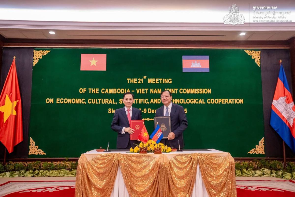 ឯកឧត្តម ប្រាក់ សុខុន ឧបនាយករដ្ឋមន្ត្រី រដ្ឋមន្ត្រីការបរទេស និងសហប្រតិបត្តិការអន្តរជាតិ នៃព្រះរាជាណាចក្រកម្ពុជា និងឯកឧត្តម ឡៃ ហ័យជុង រដ្ឋមន្ត្រីការបរទេស នៃសាធារណរដ្ឋ សង្គមនិយមវៀតណាម នៅថ្ងៃទី៩ ខែធ្នូ ឆ្នាំ២០២៥ បានអញ្ជើញធ្វើជាសហប្រធានដឹកនាំកិច្ចប្រជុំលើកទី២១ នៃគណៈកម្មការចម្រុះកម្ពុជា-វៀតណាម ស្តីពី កិច្ចសហប្រតិបត្តិការសេដ្ឋកិច្ច វប្បធម៌ វិទ្យាសាស្ត្រ និងបច្ចេកវិទ្យា (JC លើកទី២១) នៅខត្ត សៀមរាប ព្រះរាជាណាចក្រកម្ពុជា។ ដោយភាគីទាំងពីរ បានអះអាងជាថ្មីនូវ ការប្តេជ្ញាចិត្តយ៉ាងមុតមាំក្នុងការធ្វើឱ្យស៊ីជម្រៅបន្ថែមទៀតនូវកិច្ចសហប្រតិបត្តិការលើគ្រប់វិស័យ ស្របតាម ស្មារតីនៃ “ភាពជាអ្នកជិតខាងល្អ មិត្តភាពប្រពៃណី កិច្ចសហប្រតិបត្តិការគ្រប់ជ្រុងជ្រោយ និងស្ថិរភាពយូរអង្វែង”។