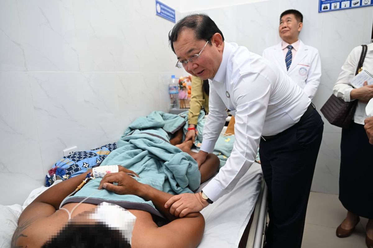 ភ្នំពេញ ៖ ឯកឧត្តមសាស្រ្តាចារ្យ ឈាង រ៉ា រដ្ឋមន្រ្តីក្រសួងសុខាភិបាល និងថ្នាក់ដឹកនាំក្រសួងសុខាភិបាល បានអញ្ជើញចុះសួរសុខទុក្ខវីរកងទ័ព ដែលកំពុងសម្រាកព្យាបាល នៅមន្ទីរពេទ្យព្រះអង្គឌួង នាព្រឹកថ្ងៃចន្ទ ទី១៥ ខែធ្នូ ឆ្នាំ២០២៥នេះ។