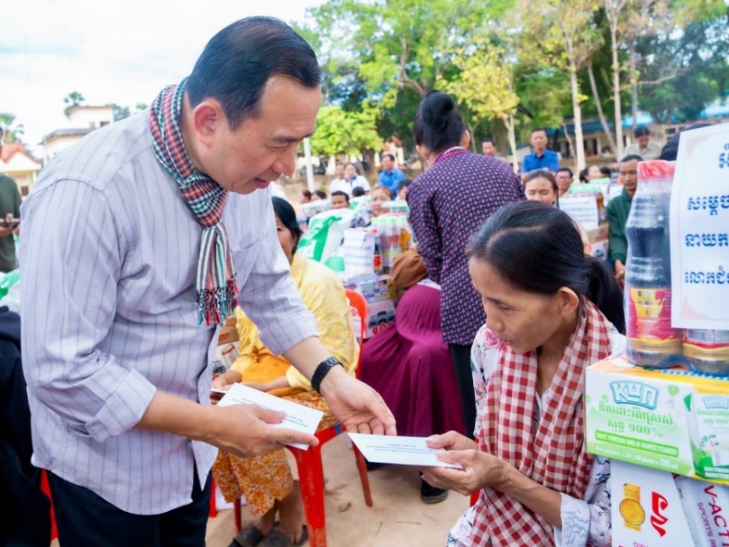 ឯកឧត្តម ហួត ហាក់ រដ្ឋមន្ត្រីក្រសួងទេសចរណ៍ អនុប្រធានក្រុមការងាររាជរដ្ឋាភិបាលចុះមូលដ្ឋានខេត្តកំពង់ចាម និងជាប្រធានក្រុមការងាររាជរដ្ឋាភិបាលចុះមូលដ្ឋានស្រុកស្ទឹងត្រង់ និងលោកជំទាវ រួមជាមួយក្រុមការងារ នៅថ្ងៃទី១៦ ខែធ្នូ ឆ្នាំ២០២៥ នេះ បាននាំយកអំណោយដ៏ថ្លៃថ្លារបស់សម្តេចមហាបវរធិបតី ហ៊ុន ម៉ាណែត នាយករដ្ឋមន្ត្រីនៃព្រះរាជាណាចក្រកម្ពុជា និងលោកជំទាវបណ្ឌិត ពេជ ចន្ទមុនី្ន ហ៊ុនម៉ាណែត ជូនលោកតាលោកយាយ អ៊ំពូមីង បងប្អូនដែលជាគ្រួសារភៀសសឹកនៅស្រុកស្ទឹងត្រង់ ខេត្តកំពង់ចាម ចំនួន ៣៣៥គ្រួសារ ដែលនេះជាការបំពេញកិច្ចការងារយ៉ាងសកម្ម ក្រោមការចង្អុលបង្ហាញដោយផ្ទាល់ពី សម្ដេចមហាបវរធិបតី ហ៊ុន ម៉ាណែត នាយករដ្ឋមន្ត្រីនៃព្រះរាជាណាចក្រកម្ពុជា និងលោកជំទាវបណ្ឌិត ពេជ ចន្ទមុនី្ន ហ៊ុនម៉ាណែត និងឯកឧត្តមសន្តិបណ្ឌិត នេត សាវឿន ឧបនាយករដ្ឋមន្ត្រី ទទួលបន្ទុកជាប្រធានអាជ្ញាធរជាតិប្រយុទ្ធប្រឆាំងគ្រឿងញៀន និងជាប្រធានក្រុមការងាររាជរដ្ឋាភិបាលចុះមូលដ្ឋានខេត្តកំពង់ចាម ព្រមទាំងឯកឧត្តមឧត្ដមសេនីយ៍ឯក ហ៊ុន ម៉ានិត មេបញ្ជាការរងកងទ័ពជើងគោក, អនុប្រធានក្រុមការងាររាជរដ្ឋាភិបាលចុះមូលដ្ឋានខេត្តកំពង់ចាម និងជាប្រធានក្រុមការងារចុះមូលដ្ឋានស្រុកចំការលើ ក្នុងការយកចិត្តទុកដាក់ខ្ពស់បំផុតចំពោះសុខទុក្ខរបស់បងប្អូន កូនក្មួយ លោកតា លោកយាយ ជាពលករចំណាកស្រុក និងគ្រួសារភៀសសឹកទាំងអស់ ដែលត្រូវបានចល័តមករកទីទួលមានសុវត្ថិភាពបណ្ដោះអាសន្ន គេចពីសត្រូវឈ្លានពានទឹកដី។