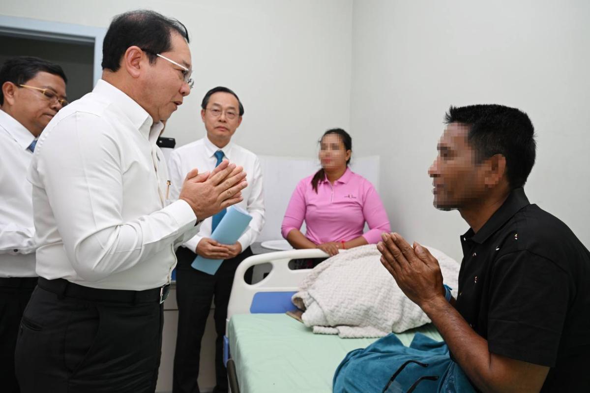 ឯកឧត្តមសាស្រ្តាចារ្យ បានឆ្លៀតពាំនាំនូវការផ្តាំផ្ញើរសួរសុខទុក្ខ ជូនពរជ័យពីបងប្អូនសាធារណជន ក្រុមគ្រួសារអ្នកជំងឺដែលកំពុងសម្រាកក្នុងមន្ទីរពេទ្យ ដល់គ្រប់វីរយុទ្ធជនយើង ទាំងកំពុងទទួលការថែទាំព្យាបាល ទាំងកំពុងឈរជើងជួរមុខ។ ឯកឧត្តមរដ្ឋមន្ត្រី បានពាំនាំជាពិសេសនូវពរសព្ទសាធុការរបស់ប្រមុខរាជរដ្ឋាភិបាល សម្ដេចអគ្គមហាសេនាបតីតេជោ ហ៊ុន សែន និងសម្ដេចកិត្តិព្រឹទ្ធបណ្ឌិត ប៊ុន រ៉ានី ហ៊ុនសែន ព្រមទាំងសម្ដេចមហាបវរធិបតី ហ៊ុន ម៉ាណែត នាយករដ្ឋមន្ត្រី និងលោកជំទាវ ដល់វីរយុទ្ធជនដែលកំពុងសម្រាកព្យាបាលគ្រប់ៗរូប ឆាប់ជាសះស្បើយ៕