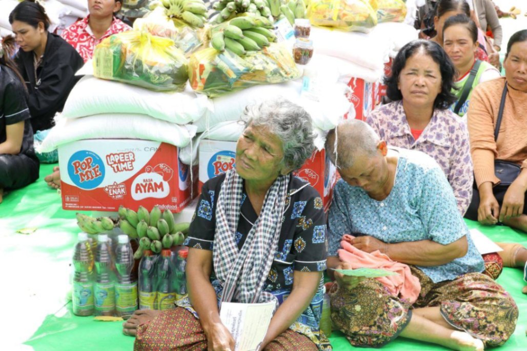 សូមជម្រាបជូនថា អំណោយដែលបានយកមកចែកជូនដល់ជនភៀសសឹកចំនួន ៣២៤គ្រួសារ ក្នុងមួយគ្រួសារៗ ទទួលបាន អង្ករ ២០គីឡូក្រាម ទឹកសុទ្ធ ១កេស ទឹកត្រី ១យួរ ទឹកស៊ីអ៉ីវ ១យួរ ត្រីខ ១យួរ មី ១កេស កញ្ចប់គ្រឿងទេស និងសម្ភារប្រើប្រាស់ ១កញ្ចប់ ចេក ពងមាន់ ពងទា និង ថវិកា ៥ម៉ឺនរៀល កូនក្មេងទទួលបានថវិកា ៥ពាន់រៀល ចំណែកឯស្ត្រីមានផ្ទៃពោះទទួលបានថវិកា ១០ម៉ឺនរៀល៕