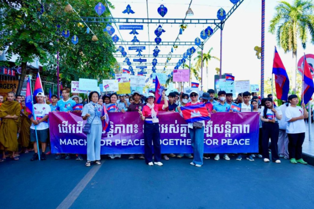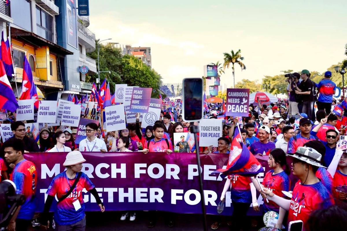 មហាជនកម្ពុជាគ្រប់ទិសទីកំពុងចូលរួមយ៉ាងច្រើនកុះករក្នុងព្រឹត្តិការណ៍ ដើរដើម្បីសន្តិភាព-March for Peace គាំទ្រសន្តិភាព ជំរុញឱ្យគោរពបទឈប់បាញ់ និងកិច្ចព្រមព្រៀងសន្តិភាពរវាងកម្ពុជា និងថៃ