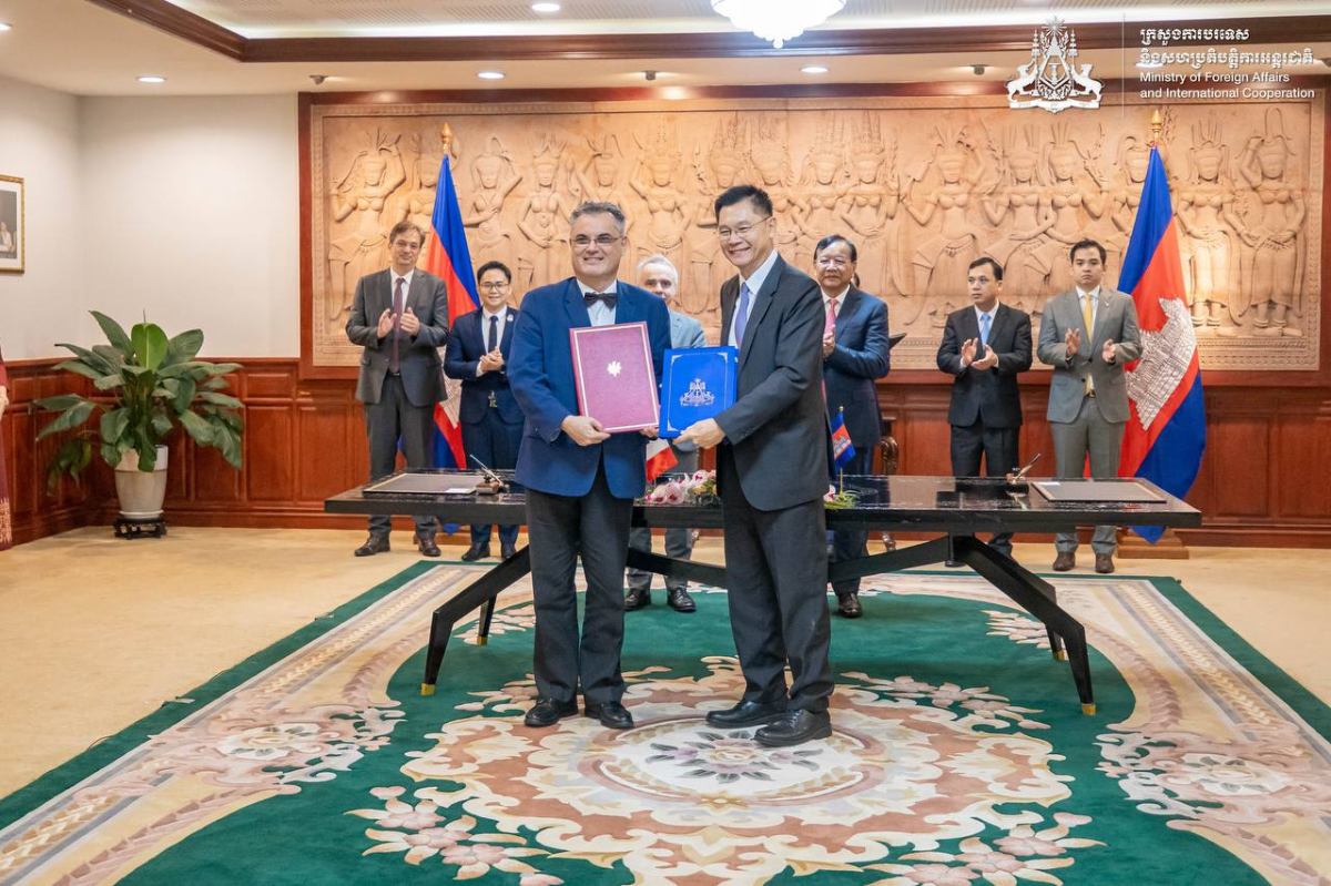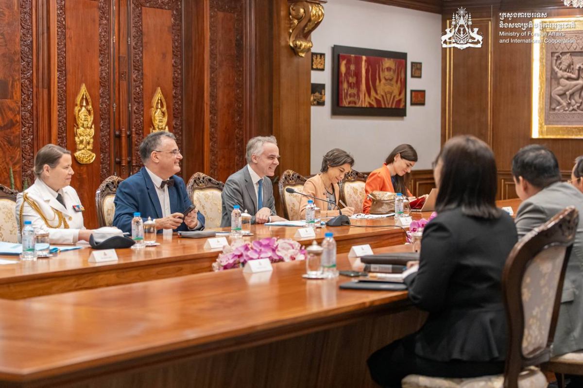 នៅព្រឹកថ្ងៃទី១៨ ខែធ្នូ ឆ្នាំ២០២៥ ឯកឧត្តម ប្រាក់ សុខុន ឧបនាយករដ្ឋមន្ត្រី រដ្ឋមន្រ្តីក្រសួងការបរទេស និងកិច្ចសហប្រតិបត្តិការអន្តរជាតិ បានអញ្ជើញទទួលជំនួបសម្តែងការគួរសមរបស់លោក Benoît GUIDÉE ប្រធាននាយកដ្ឋានអាស៊ី និងអូសេអានី នៃក្រសួងអឺរ៉ុប និងការបរទេសនៃសាធារណរដ្ឋបារាំង ដែលបានអញ្ជើញមកកម្ពុជាក្នុងនាមជាសហប្រធាននៃកិច្ចប្រជុំពិគ្រោះយោបល់នយោបាយទ្វេភាគីលើកទី៣ រវាងព្រះរាជាណាចក្រកម្ពុជា និងសាធារណរដ្ឋបារាំង។