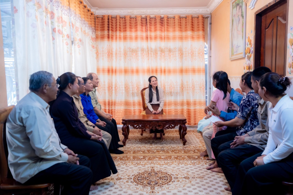 ក្នុងឱកាសជួបសំណេះសំណាលនេះដែរ លោកជំទាវបណ្ឌិត បានពាំនាំនូវប្រសាសន៍ផ្តាំផ្ញើសួរសុខទុក្ខ និងជូនពរដ៏ខ្ពង់ខ្ពស់បំផុតរបស់ សម្តេចអគ្គមហាសេនាបតីតេជោ ហ៊ុនសែន សម្តេចកិត្តិព្រឹទ្ធបណ្ឌិត ប៊ុន រ៉ានី ហ៊ុនសែន រួមជាមួយ សម្តេចមហាបវរធិបតី ហ៊ុន ម៉ាណែត ជូនក្រុមគ្រួសារយោធិន ដោយសូមឱ្យមានសុខភាពល្អ មាំមួន ទាំងម្តាយទាំងកូន និងមានសុវត្ថិភាពចំពោះស្វាមីជាយោធិនដែលកំពុងប្រយុទ្ធយ៉ាងអង់អាចការពារទឹកដីពីសត្រូវសៀមឈ្លានពាន។