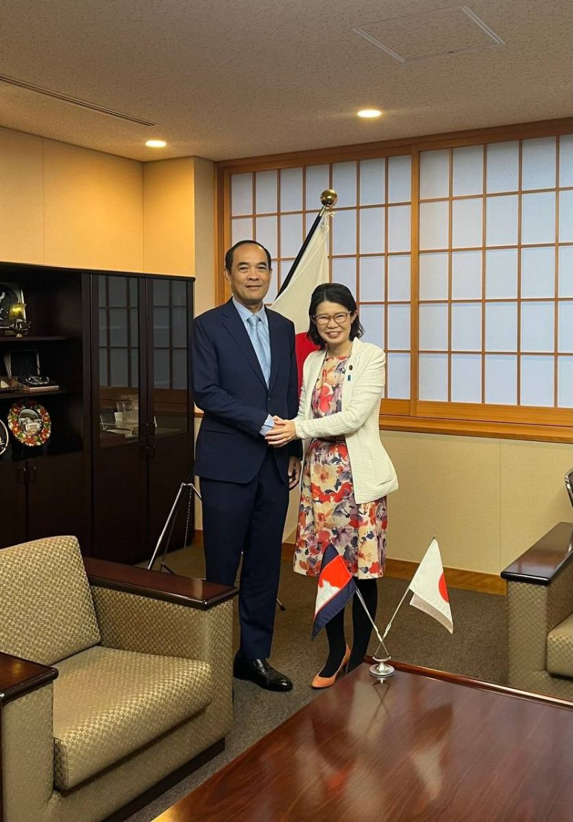 ឯកឧត្តមឯកអគ្គរាជទូត បានសម្តែងការកោតសរសើរចំពោះការគាំទ្រជាបន្តបន្ទាប់របស់ជប៉ុន និងបានបញ្ជាក់ជាថ្មីនូវការប្ដេជ្ញាចិត្តយ៉ាងមុតមាំរបស់កម្ពុជា ក្នុងការជំរុញភាពជាដៃគូយុទ្ធសាស្ត្រគ្រប់ជ្រុងជ្រោយ កម្ពុជា-ជប៉ុន និងការអនុវត្តកញ្ចប់សហបង្កើតសេដ្ឋកិច្ចកម្ពុជា-ជប៉ុន។ ក្នុងអំឡុងពេលនៃជំនួបពិភាក្សា ឯកឧត្តមឯកអគ្គរាជទូត បានគូសបញ្ជាក់អំពីអាទិភាពសំខាន់ៗសម្រាប់កិច្ចសហប្រតិបត្តិការទ្វេភាគី រួមទាំង ទិសដៅរួមនៃកិច្ចសន្ទនានយោបាយ ភាពជាដៃគូសេដ្ឋកិច្ច ការផ្លាស់ប្តូរប្រជាជននិងប្រជាជន កិច្ចសហប្រតិបត្តិការអភិវឌ្ឍ និងកិច្ចសហប្រតិបត្តិការក្នុងតំបន់។