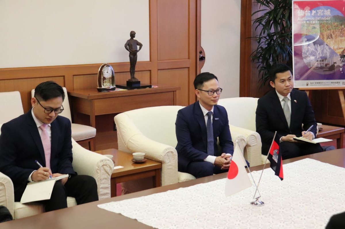 ខេត្តមីយ៉ាហ្គិ ប្រទេសជប៉ុន៖ នៅថ្ងៃទី១៨ ខែធ្នូ ឆ្នាំ២០២៥ ឯកឧត្តម តាំង ផេងរិទ្ធី អនុរដ្ឋលេខាធិការក្រសួងការងារ និងបណ្តុះបណ្តាលវិជ្ជាជីវៈ តំណាង ឯកឧត្តម ហេង សួរ រដ្ឋមន្ត្រី បានជួបសម្តែងការគួរសមជាមួយឯកឧត្តម Yoshihiro Murai អភិបាលខេត្តមីយ៉ាហ្គិ នៅសាលាខេត្តមីយ៉ាហ្គិ ប្រទេសជប៉ុន។