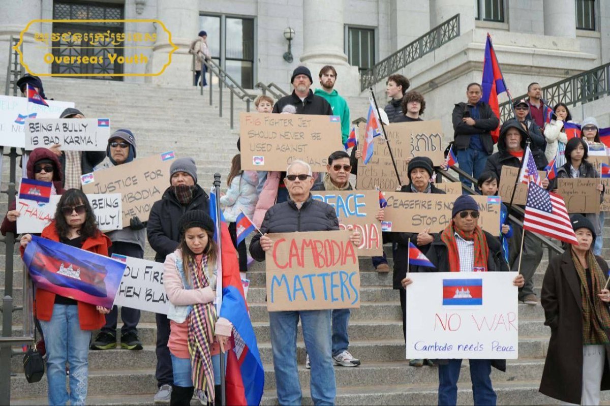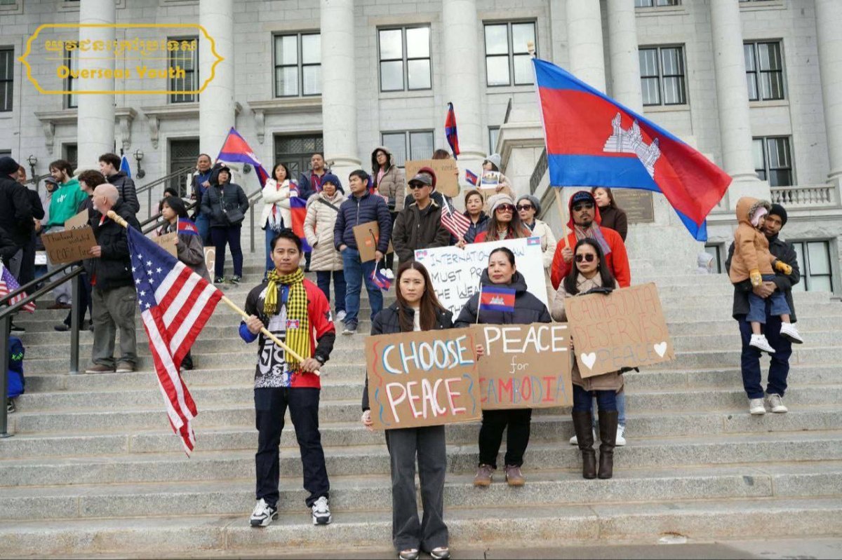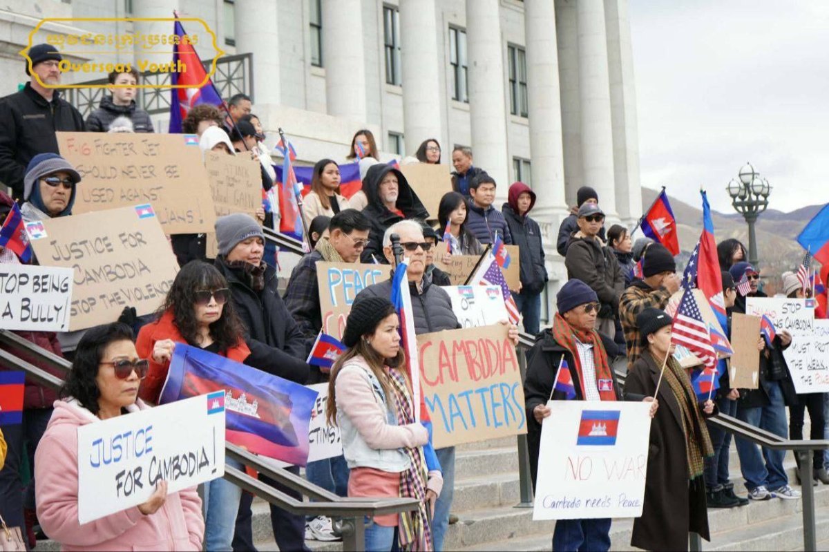 រដ្ឋយូថា សហរដ្ឋអាមេរិក៖ នៅថ្ងៃទី២០ ខែធ្នូ ឆ្នាំ២០២៥ នៅខាងមុខវិមានរដ្ឋាភិបាលរដ្ឋយូថា (Utah State Capitol) លោក សេង សេដ្ឋា, លោក ឌី ឌេត, និងលោកស្រី ស៊ុន កណិការ ព្រមទាំងប្រជាពលរដ្ឋខ្មែរ-អាមេរិកាំង រស់នៅរដ្ឋយូថា សហរដ្ឋអាមេរិក ចំនួនប្រមាណ ១៥៥នាក់ បានជួបជុំគ្នាប្រកាសថ្កោថ្កោលទោសចំពោះការឈ្លានពានដោយកម្លាំងយោធាខុសច្បាប់របស់ប្រទេសថៃ មកលើអធិបតេយ្យភាពនៃព្រះរាជាណាចក្រកម្ពុជា និងគោរពស្នើសុំឱ្យឯកឧត្តម ប្រធានាធិបតីសហរដ្ឋអាមេរិក ដូណាល់ ត្រាំ ជួយអន្តរាគមន៍ឱ្យភាគីរដ្ឋាភិបាល និងកងទ័ពថៃ បញ្ឈប់សង្គ្រាមឈ្លានពាន និងគោរពតាមសេចក្តីថ្លែងការស្តីពីកិច្ចព្រមព្រៀងសន្តិភាពកម្ពុជា-ថៃ ដែលបានចុះហត្ថលេខាកាលពីថ្ងៃទី២៦ ខែតុលា ឆ្នាំ២០២៥ នៅប្រទេសម៉ាឡេស៊ី។