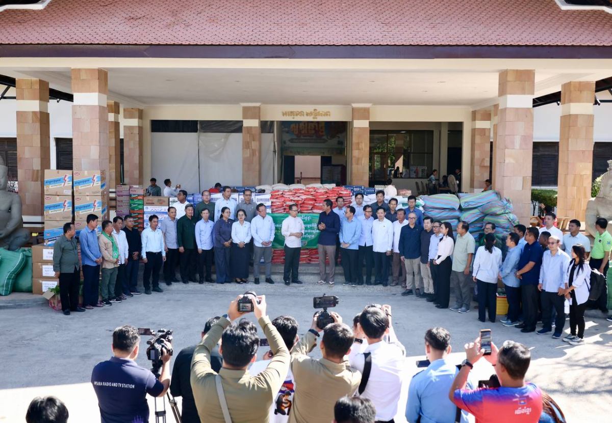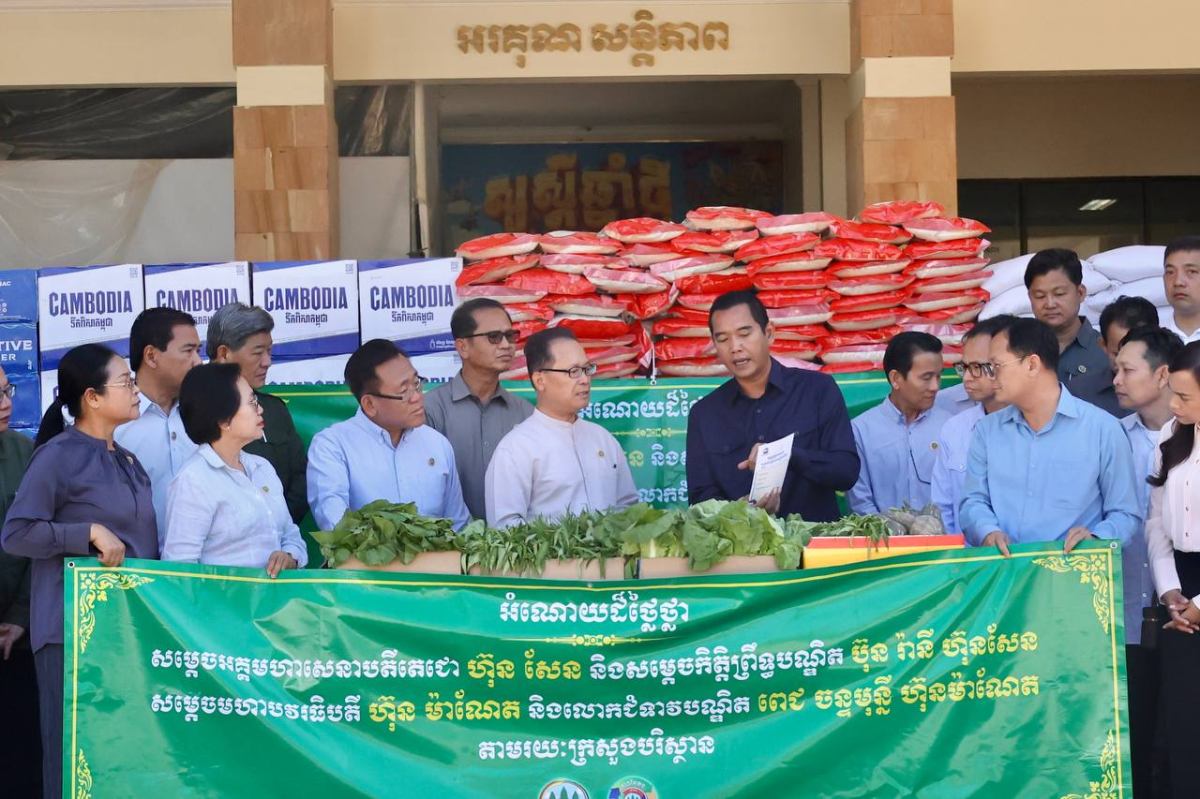 សូមបញ្ជាក់ថា អំណោយដ៏ថ្លៃថ្លាជាស្បៀងអាហារ និងសម្ភារៈប្រើប្រាស់ របស់សម្តេចតេជោ ហ៊ុន សែន ប្រធានព្រឹទ្ធសភា និងសម្តេចកិត្តិព្រឹទ្ធបណ្ឌិត ប៊ុន រ៉ានី ហ៊ុនសែន និងសម្តេចធិបតី ហ៊ុន ម៉ាណែត នាយករដ្ឋមន្ត្រីនៃព្រះរាជាណាចក្រកម្ពុជា និងលោកជំទាវបណ្ឌិត ពេជ ចន្ទមុន្នី តាមរយៈក្រសួងបរិស្ថាន ដែលបានត្រូវប្រគល់ជូននាពេលនេះរួមមាន៖ ទឹកឋុទ្ធ ដបធំ. អំបុក អង្ករ មី សំលៀកបំពាក់ ខោអាវ ភួយ ត្រីខទឹកសុទ្ធ ទឹកក្រូច នំក្រៀម ដំណាប់ស្វាយ រួមជាមួយគ្រឿងឧបភោគបរិភោគ ជាច្រើនផ្សេងទៀត៕
