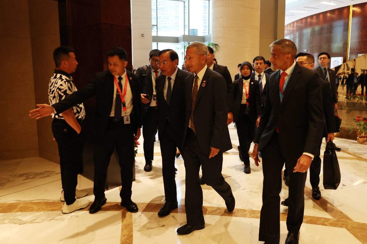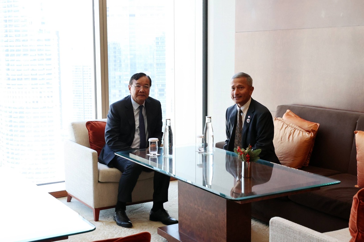 ឯកឧត្តម ប្រាក់ សុខុន ឧបនាយករដ្ឋមន្ត្រី រដ្ឋមន្ត្រីការបរទេស និងសហប្រតិបត្តិការអន្តរជាតិ នៃព្រះរាជាណាចក្រកម្ពុជា អញ្ជើញជួបពិភាក្សាការងារជាមួយឯកឧត្តម Vivian Balakhrisnan រដ្ឋមន្ត្រីការបរទេសសិង្ហបុរី នៅទីក្រុងគូឡាឡាំពួ ប្រទេសម៉ាឡេស៊ី នាព្រឹកថ្ងៃទី២២ ខែធ្នូ ឆ្នាំ២០២៥នេះ មុនកិច្ចប្រជុំពិសេសរដ្ឋមន្ត្រីការបរទេសអាស៊ានស្តីពីស្ថានភាពបច្ចុប្បន្ន រវាងកម្ពុជា និងថៃ ដែលនឹងប្រព្រឹត្តទៅនៅថ្ងៃទី២២ ខែធ្នូ ឆ្នាំ២០២៥ នៅទីក្រុងគូឡាឡាំពួ។ រូប៖ AKP