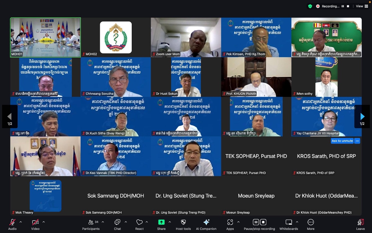 កិច្ចប្រជុំមានការអញ្ជើញចូលរួមពី ឯកឧត្តម លោកជំទាវ រដ្ឋលេខាធិការ អនុរដ្ឋលេខាធិការ ទីប្រឹក្សាក្រសួង អគ្គនាយក អគ្គនាយករង និងគ្រប់ប្រធានអង្គភាពថ្នាក់កណ្តាលក្រោមឱវាទក្រសួងសុខាភិបាល ប្រធានមន្ទីរសុខាភិបាលរាជធានីភ្នំពេញ និងតាមប្រព័ន្ធ Zoom ប្រធានមន្ទីរសុខាភិបាលខេត្ត៕