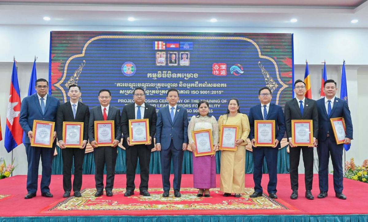 ឯកឧត្តមរដ្ឋមន្រ្តី បានបន្ថែមថា ស្តង់ដារ ISO 9001:2015 គឺបានផ្តោតទៅលើទំនួលខុសត្រូវ និងគណនេយ្យភាពស្ថាប័នទាំង មូល ចាប់ពីប្រធានអង្គភាព រហូតដល់បុគ្គលិក តាមច្រវាក់ផលិតកម្ម និងដំណើរការនីមួយៗ ដើម្បីធានាបាននូវផលិតផលសម្រេច ដែលអនុលោមទៅតាមស្តង់ដារ បទប្បញ្ញត្តិបច្ចេកទេស និងលក្ខខណ្ឌតម្រូវទីផ្សារពាក់ព័ន្ធ។ គម្រោងនេះបានបណ្តុះបណ្តាលអ្នក ជំនាញ ត្រូវបានវាយតម្លៃជាអន្តរជាតិ ពីស្ថាប័នវិជ្ជាជីវៈផ្នែកគុណភាព Chartered Quality Institute ដោយជោគជ័យ ក្នុងនោះមាន គ្រូបង្គោលចំនួន ១៥នាក់ ដែល ១០នាក់ មកពីប្រទេសកម្ពុជា, ២នាក់មកពីប្រទេសឡាវ និង៣នាក់មកពីមីយ៉ាន់ម៉ា ព្រមទាំងអ្នកដឹក នាំសវនករចំនួន ១០នាក់ ដែលមាន៧នាក់ជាជនជាតិខ្មែរ។