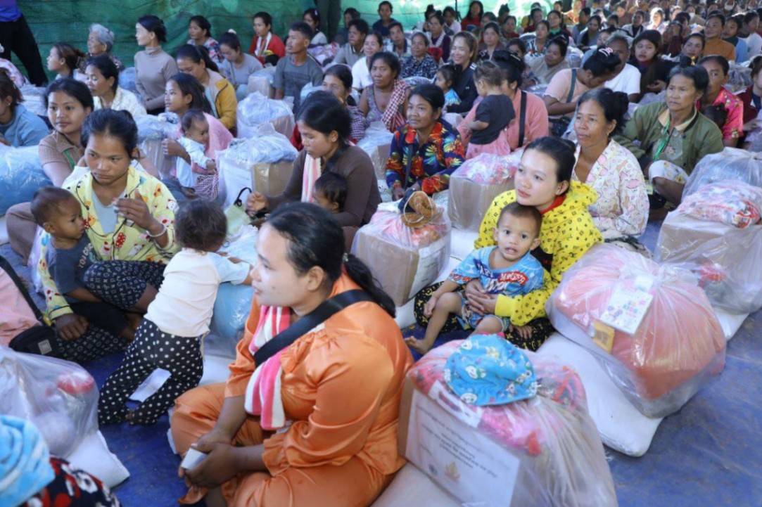 សម្តេចកិត្តិសង្គហបណ្ឌិត ម៉ែន សំអន ឧត្តមប្រឹក្សាផ្ទាល់ព្រះមហាក្សត្រ នៃព្រះរាជាណាចក្រកម្ពុជា និងជាប្រធានគណៈកម្មាធិការសមាគមនារីកម្ពុជាដើម្បីសន្តិភាព និងអភិវឌ្ឍន៍ បានជួបសំណេះសំណាល និងនាំយកស្បៀងចែកជូនជនភៀសសឹកចំនួន ១.១៨០គ្រួសារ នៅខេត្តព្រះវិហារ នាព្រឹកថ្ងៃពុធ ៥កើត ខែបុស្ស ឆ្នាំម្សាញ់ សប្តស័ក ព.ស. ២៥៦៩ ត្រូវនឹង ថ្ងៃទី២៤ ខែធ្នូ ឆ្នាំ២០២៥។