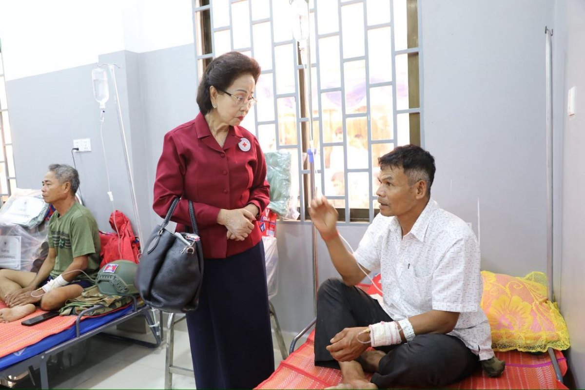 សូមបញ្ជាក់ថា វីរៈយុទ្ធជនដែលរងរបួស និងពុលផ្សែងក្នុងសមរភូមិ ទទួលបាននូវការឧបត្ថម្ភពី សម្តេចកិត្តិព្រឹទ្ធបណ្ឌិត ប៊ុន រ៉ានី ហ៊ុនសែន ប្រធានកាកបាទក្រហមកម្ពុជា រួមមានគ្រឿងឧបភោគបរិភោគ សម្ភារប្រើប្រាស់ និងថវិកាមួយចំនួន។ ជាមួយគ្នានេះ សម្តេចកិត្តិព្រឹទ្ធបណ្ឌិត ប្រធានកាកបាទក្រហមកម្ពុជា បានឧបត្ថម្ភថវិកា៤០លានរៀល ជូនមន្ទីរពេទ្យសម្រាប់ដោះស្រាយអាហារ ដល់វីរៈយុទ្ធជន ក្នុងអំឡុងពេលសម្រាកព្យាបាលនេះផងដែរ។ លើសពីនេះទៅទៀត តាមសំណូមពររបស់មន្ទីរពេទ្យខេត្តកំពង់ធំ, សម្តេចកិត្តិព្រឹទ្ធបណ្ឌិត ប៊ុន រ៉ានី ហ៊ុនសែន ប្រធានកាកបាទក្រហមកម្ពុជា បានឧបត្ថម្ភ ម៉ាស៊ីនថតឆ្អឹងពេលវះកាត់ (C-Arm) ១គ្រឿង និងម៉ាស៊ីនថតកាំរស្មីអិក្សចល័ត (X-Ray) ១គ្រឿង ជូនមន្ទីរពេទ្យ ដែលមានតម្រូវការចាំបាច់សម្រាប់សេវាកម្មសុខាភិបាលក្នុងមន្ទីរពេទ្យ។ ទន្ទឹមនឹងនេះ សម្តេចកិត្តិព្រឹទ្ធបណ្ឌិត បានឧបត្ថម្ភទឹកបរិសុទ្ធ វី-អាកទីវ ចំនួន ២០០កេស និងភេសជ្ជៈ វី-កូឡា ចំនួន ២០០កេស ជូនដល់រដ្ឋបាលខេត្តកំពង់ធំ សម្រាប់ប្រើប្រាស់តាមការចាំបាច់ផងដែរ៕