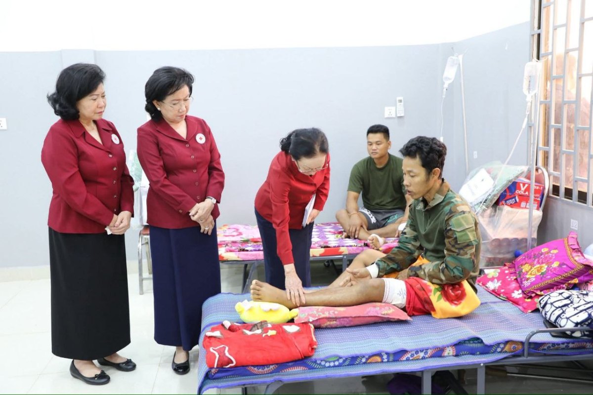 ក្នុងមនោសញ្ចេតនាអាណិតស្រឡាញ់ដ៏ជ្រាលជ្រៅបំផុត ចំពោះពលីកម្មដ៏ធំធេងមិនអាចកាត់ថ្លៃបាន សម្រាប់ជាតិមាតុភូមិ នៅព្រឹកថ្ងៃទី២៤ ខែធ្នូ ឆ្នាំ២០២៥នេះ សម្ដេចកិត្ដិព្រឹទ្ធបណ្ឌិត ប៊ុន រ៉ានី ហ៊ុនសែន ប្រធាន កាកបាទក្រហមកម្ពុជា បានបន្តអញ្ជើញចុះសួរសុខទុក្ខវីរៈយុទ្ធជន ការពារបូរណភាពទឹកដីដ៏អង់អាចក្លាហាន ដែលរងរបួស និងពុលផ្សែងក្នុងសមរភូមិ កំពុងព្យាបាលនៅមន្ទីរពេទ្យខេត្តកំពង់ធំ។