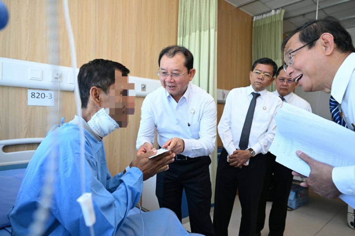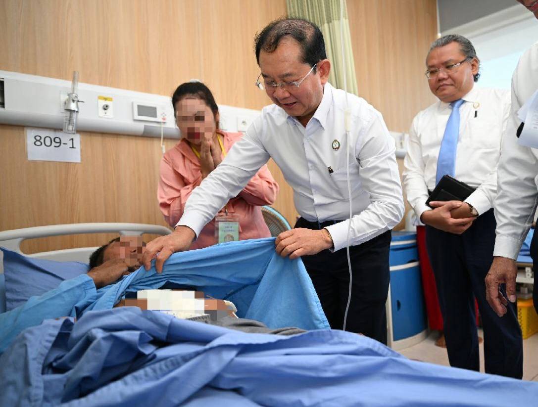 ភ្នំពេញ ៖ នាព្រឹកថ្ងៃពុធ ទី២៤ ខែធ្នូ ឆ្នាំ២០២៥ ឯកឧត្តមសាស្រ្តាចារ្យ ឈាង រ៉ា រដ្ឋមន្រ្តីក្រសួងសុខាភិបាល និងថ្នាក់ដឹកនាំក្រសួងសុខាភិបាល អញ្ជើញចុះសួរសុខទុក្ខវីរកងទ័ព ដែលកំពុងសម្រាកព្យាបាល នៅមន្ទីរពេទ្យមិត្តភាពកម្ពុជា-ចិន ព្រះកុសុមៈ។