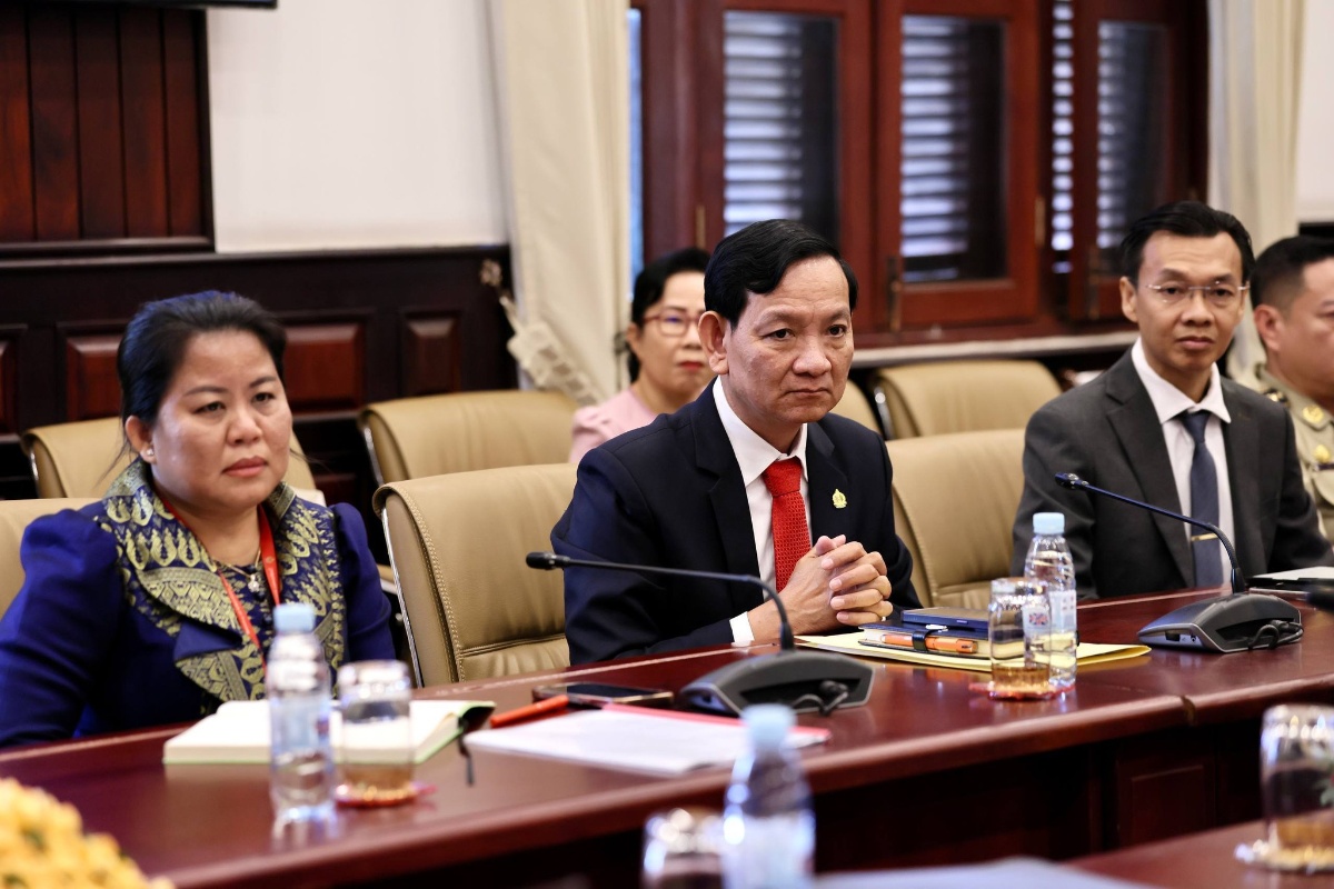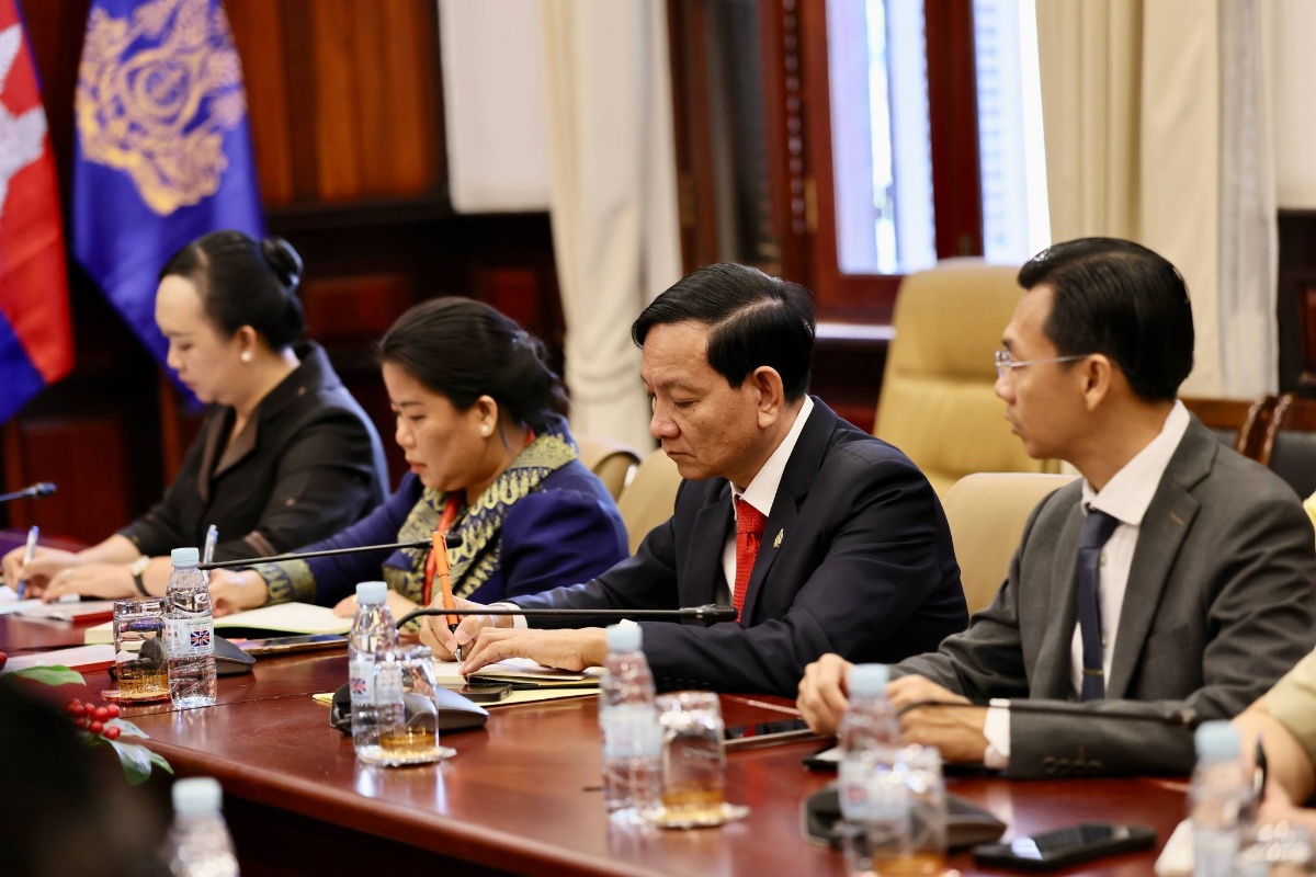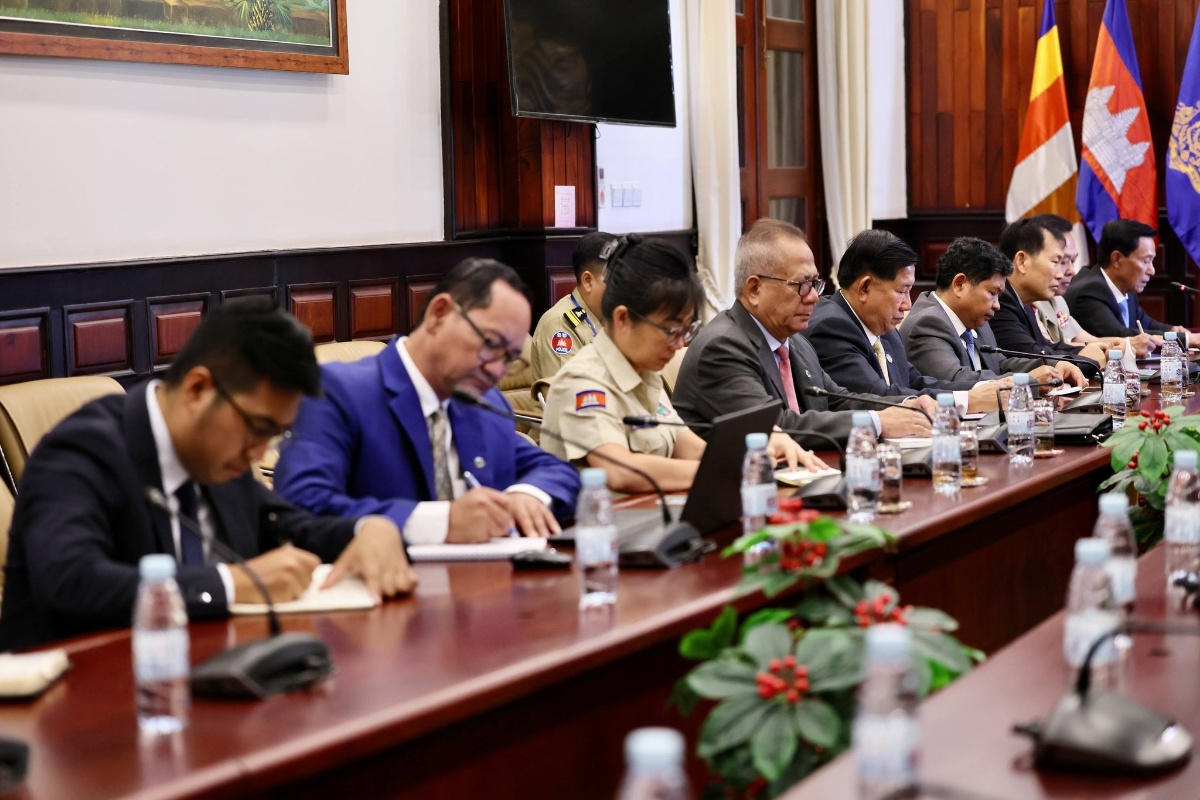 នាព្រឹកថ្ងៃទី២៥ ខែធ្នូ ឆ្នាំ២០២៥ នៅទីស្ដីការក្រសួង ឯកឧត្តមបណ្ឌិតសភាចារ្យ ហង់ជួន ណារ៉ុន ឧបនាយករដ្ឋមន្ត្រី រដ្ឋមន្ត្រីក្រសួងអប់រំ យុវជន និងកីឡា បានទទួលជួបសម្តែងការគួរសម និងពិភាក្សាការងារជាមួយប្រតិភូ គណៈកម្មការប្រយុទ្ធប្រឆាំងផលិតផលក្លែងក្លាយដែលបង្កគ្រោះថ្នាក់ មានហានិភ័យខ្ពស់ដល់សុខភាព និងសុវត្ថិភាពសង្គម (គ.ប.ផ.ក) ដឹកនាំដោយ ឯកឧត្តម នៅ លក្ខណា រដ្ឋលេខាធិការក្រសួងមហាផ្ទៃ និងជាប្រធាន គ.ប.ផ.ក. និងមានការចូលរួមពីសំណាក់ ឯកឧត្តម លោកជំទាវថ្នាក់ដឹកនាំក្រសួងអប់រំ យុវជន និងកីឡា និងមន្ត្រីពាក់ព័ន្ធក្រោមឱវាទ។
