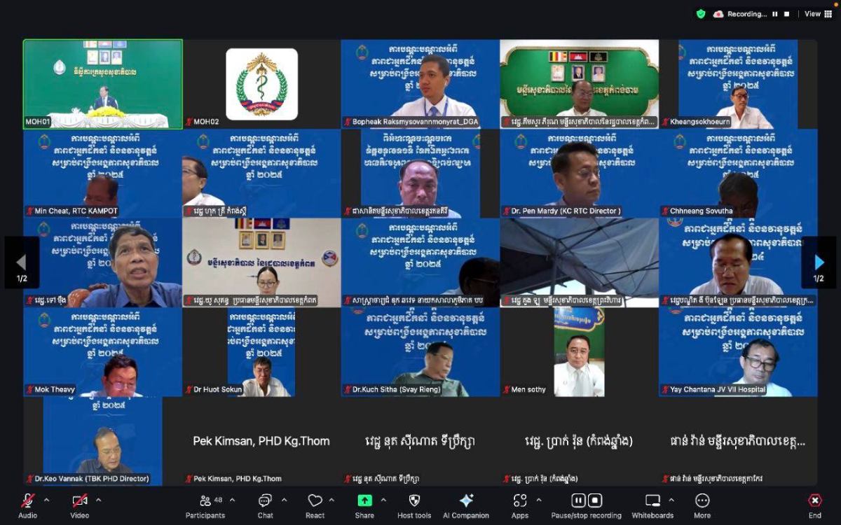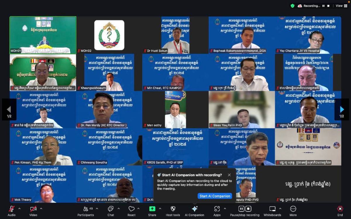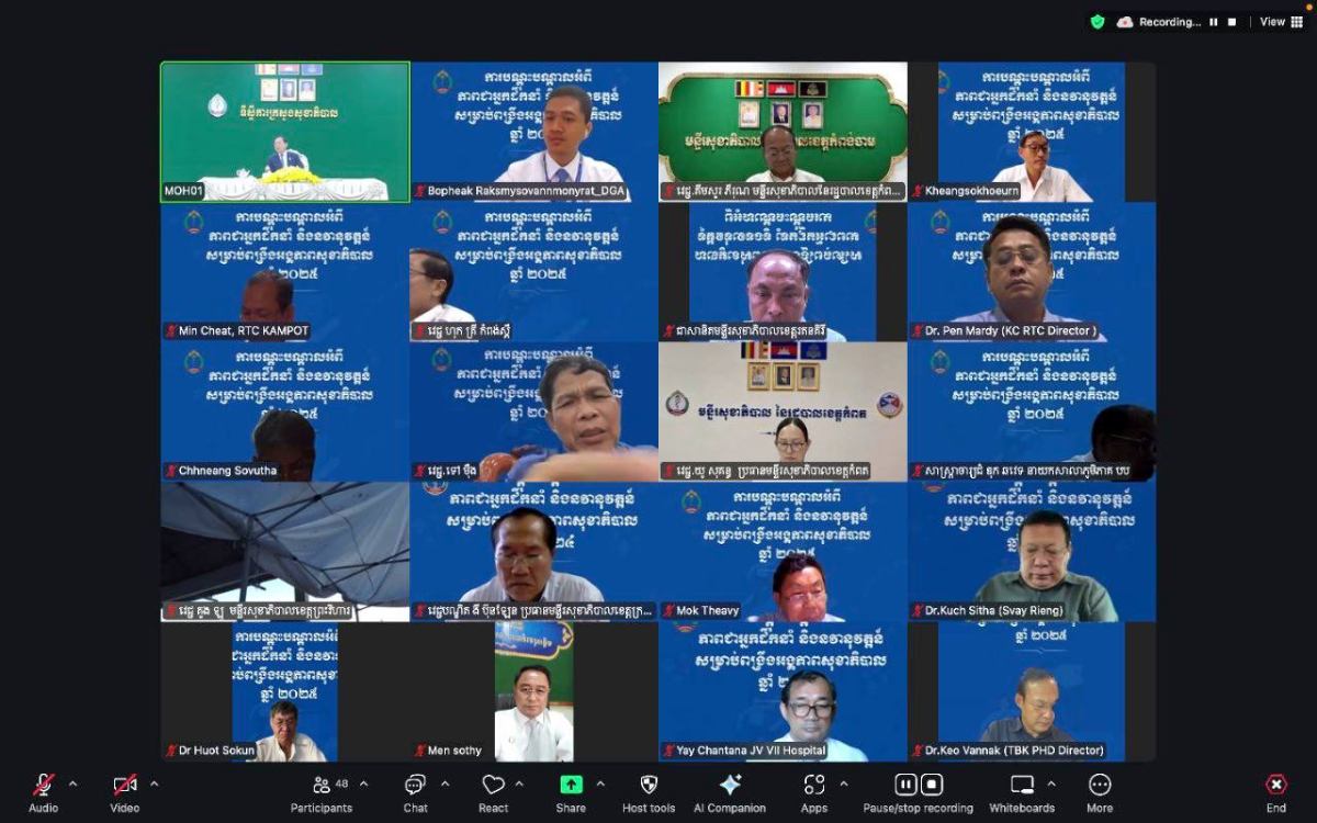 កិច្ចប្រជុំនេះ មានការអញ្ជើញចូលរួមពី ឯកឧត្តម លោកជំទាវ រដ្ឋលេខាធិការ អនុរដ្ឋលេខាធិការ ទីប្រឹក្សាក្រសួងសុខាភិបាល អគ្គនាយក លោក លោកស្រី អគ្គនាយករង ប្រធានានាយកដ្ឋាន អនុប្រធាននាយកដ្ឋាន ប្រធានការិយាល័យ នៃទីស្តីការក្រសួងសុខាភិបាល និងឯកឧត្តម លោកជំទាវ លោក លោកស្រីប្រធានអង្គភាពថ្នាក់កណ្តាល មន្ទីរពេទ្យជាតិ ព្រមទាំង ឯកឧត្តម លោកជំទាវ លោក លោកស្រី ប្រធានមន្ទីរសុខាភិបាល នៃរដ្ឋបាលរាជធានី ខេត្ត ដែលចូលរួមតាមប្រព័ន្ធ Zoom ៕