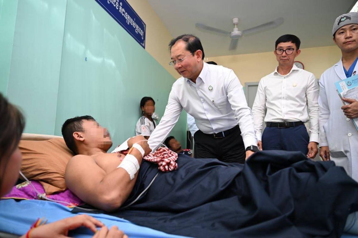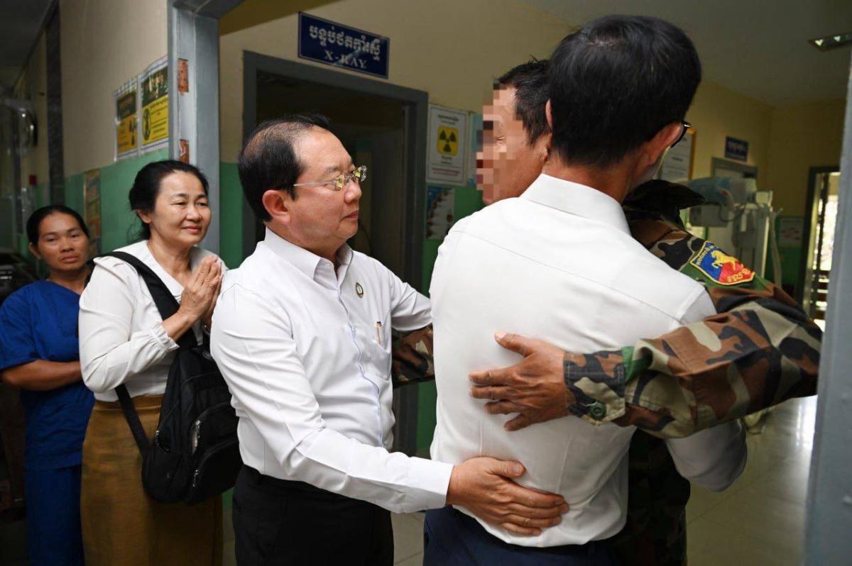 ក្នុងឱកាសចុះពិនិត្យ ឯកឧត្តមសាស្រ្តាចារ្យរដ្ឋមន្រ្តី បានពាំនាំនូវពាក្យផ្តាំផ្ញើសួរសុខទុក្ខដោយក្តីបារម្ភ ស្រលាញ់រាប់អានដ៏ជ្រាលជ្រៅ និងខ្ពង់ខ្ពស់បំផុតរបស់សម្ដេចអគ្គមហាសេនាបតីតេជោ ហ៊ុន សែន ប្រធានព្រឹទ្ធសភា និងសម្ដេចកិត្តិព្រឹទ្ធបណ្ឌិត ប៊ុន រ៉ានី ហ៊ុនសែន ប្រធានកាកបាទក្រហមកម្ពុជា ព្រមទាំងសម្ដេចមហាបវរធិបតី ហ៊ុន ម៉ាណែត នាយករដ្ឋមន្ត្រីនៃព្រះរាជាណាចក្រកម្ពុជា និងលោកជំទាវ និងសូមជូនពរដល់បងប្អូនវីរយុទ្ធជនទាំងអស់សូមឆាប់បានជាសះស្បើយ មានសុខភាពល្អប្រសើរឡើង ដើម្បីឆាប់បានវិលត្រឡប់ជួបជុំគ្រួសារវិញ៕