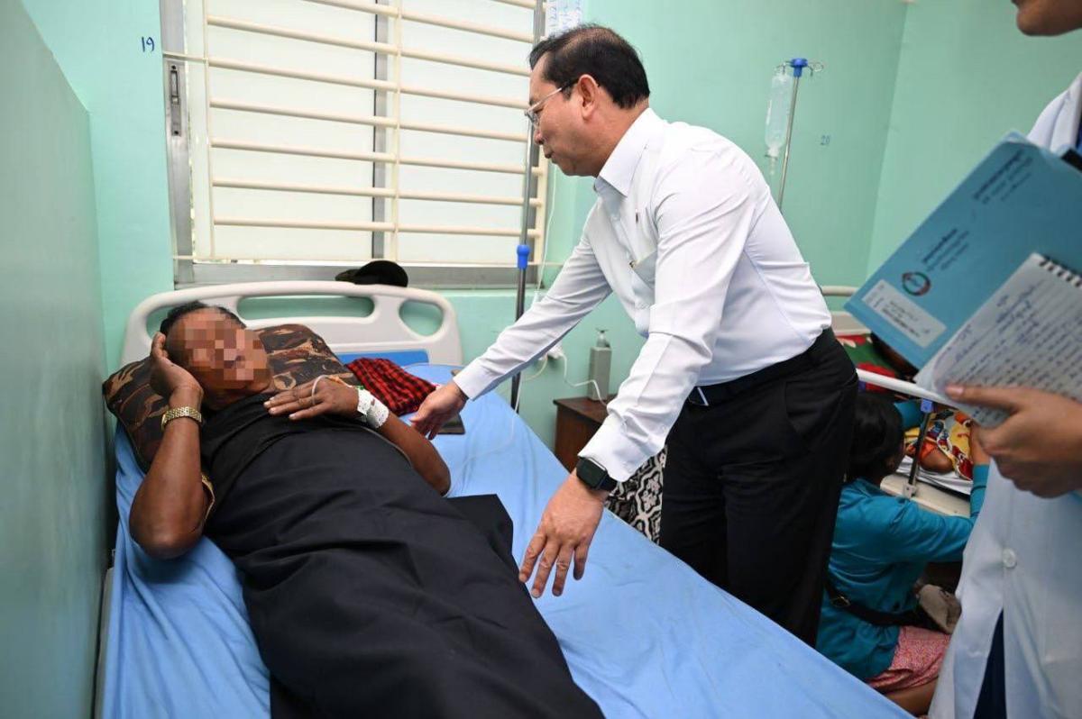 ភ្នំពេញ ៖ នារសៀលថ្ងៃចន្ទ ទី២៩ ខែធ្នូ ឆ្នាំ២០២៥ ឯកឧត្តមសាស្រ្តាចារ្យ ឈាង រ៉ា រដ្ឋមន្ត្រីក្រសួងសុខាភិបាល និងប្រតិភូក្រសួងសុខាភិបាល បានអញ្ជើញចុះសួរសុខទុក្ខ បងប្អូនវីរកងទ័ព វីរនគរបាល ដែលកំពុងសម្រាកព្យាបាល នៅមន្ទីរពេទ្យ ១៦មករា ខេត្តព្រះវិហារ។