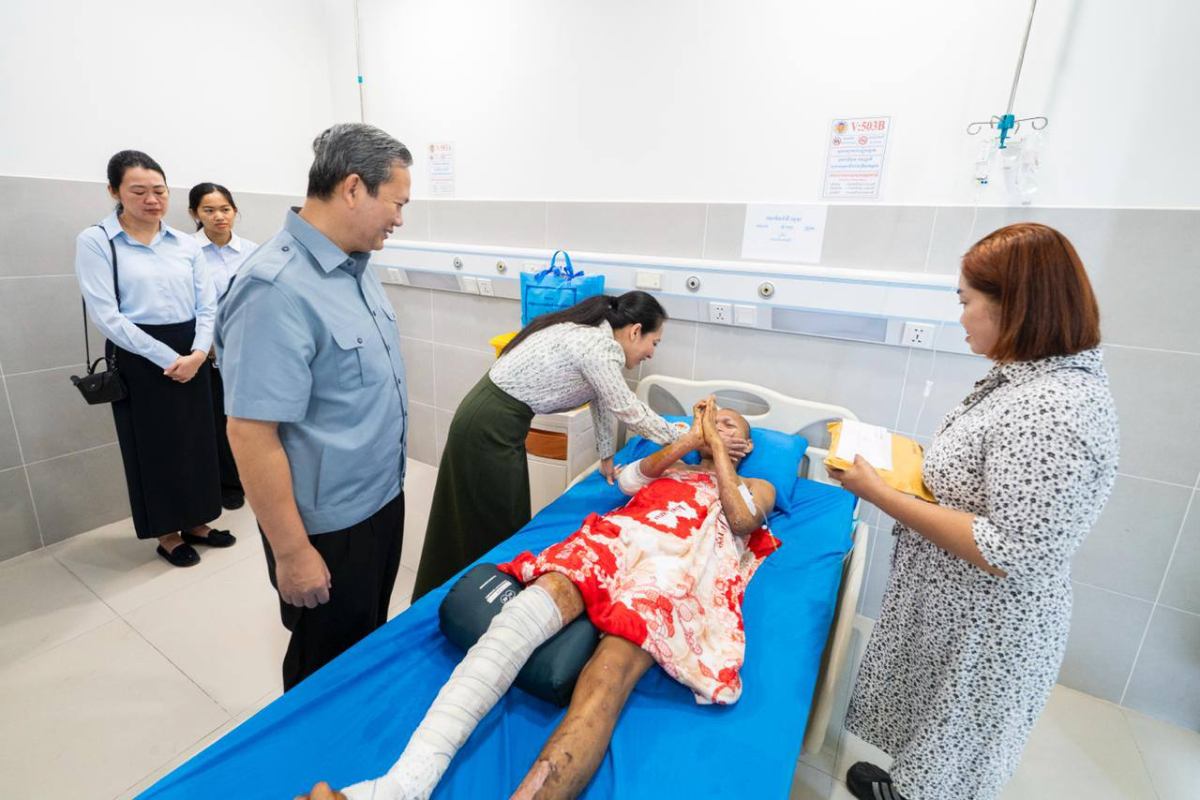 សម្ដេចធិបតី និងលោកជំទាវបណ្ឌិតបន្តចុះជួបសួរសុខទុក្ខបងប្អូនវីរកងទ័ព និងវីរនគរបាលកំពុងសម្រាកព្យាបាលបន្តនៅតាមមន្ទីរពេទ្យនៅភ្នំពេញ