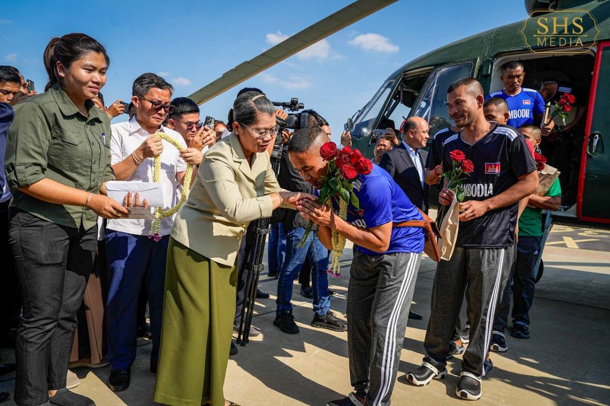 នៅរសៀលថ្ងៃទី៣១ ខែធ្នូ ឆ្នាំ២០២៥ នេះ វីរៈកងទ័ពកម្ពុជា១៨រូប បានធ្វើដំណើរតាមឧទ្ធម្ភាគចក្រមកដល់រាជធានីភ្នំពេញហើយ ក្រោយភាគីថៃដោះលែងប្រគល់ឲ្យមកកម្ពុជាវិញ