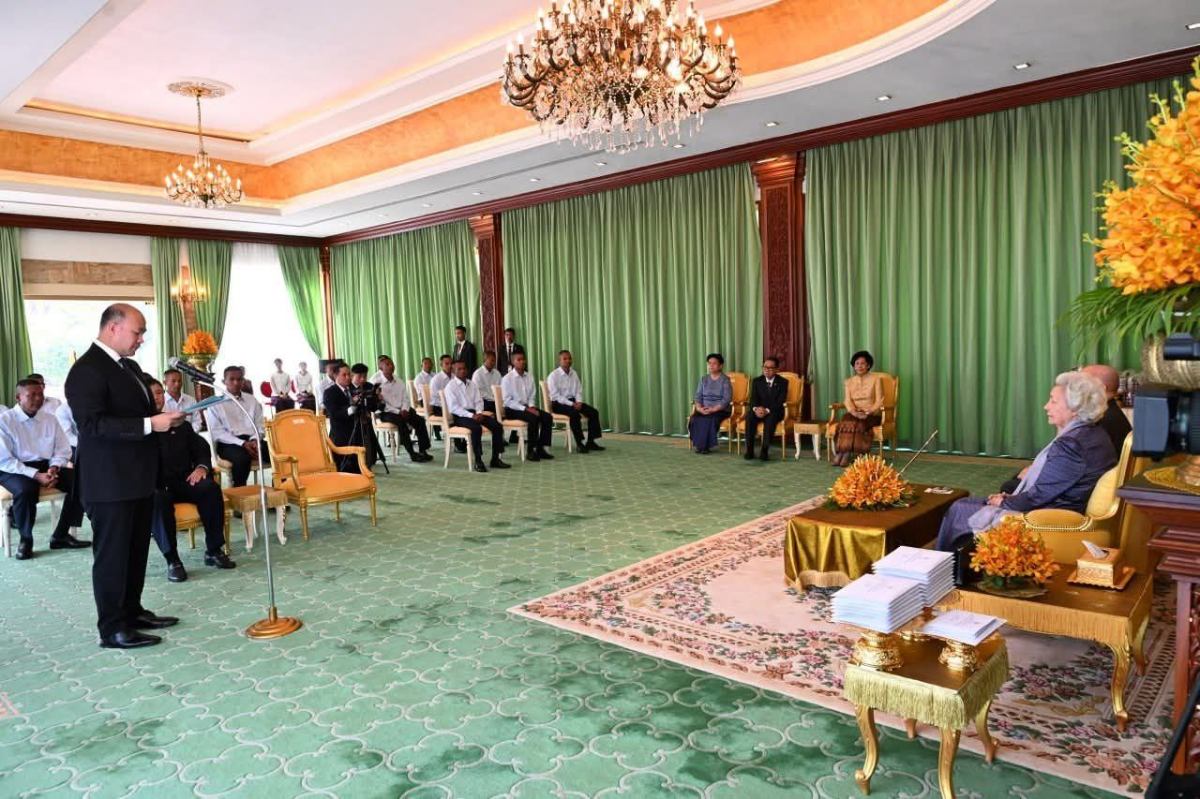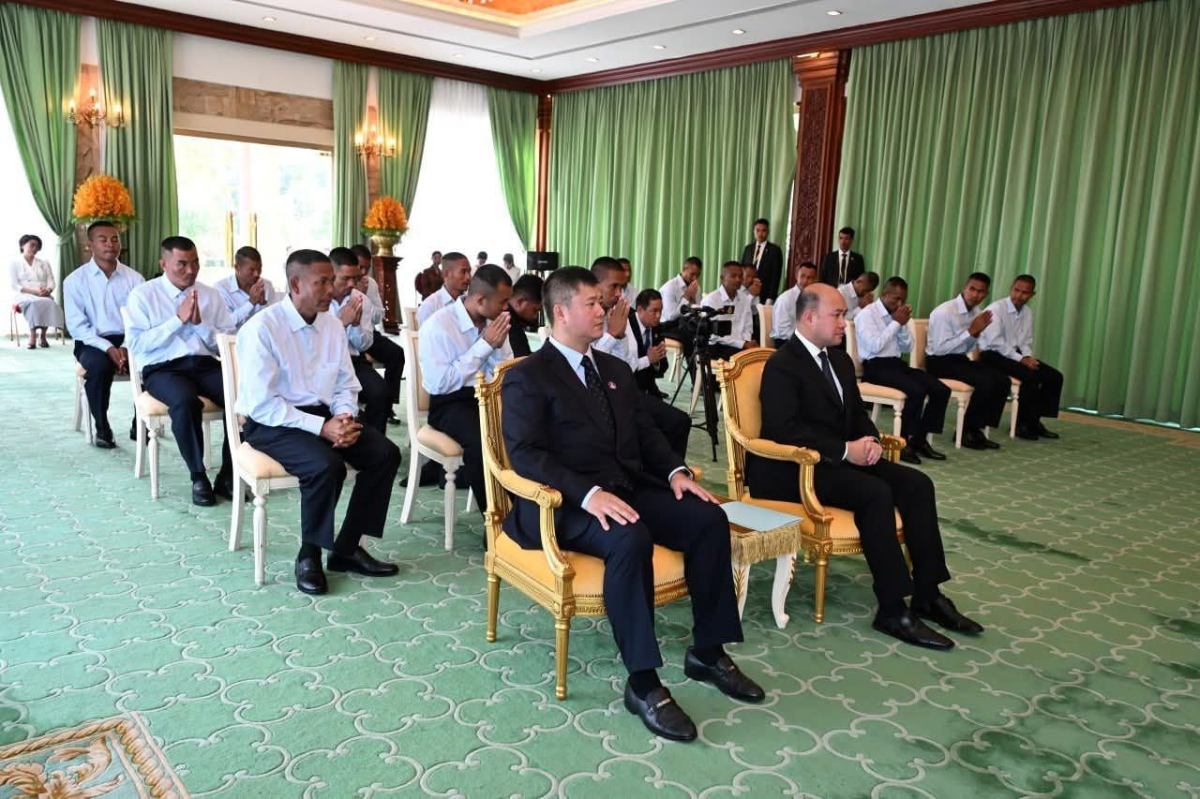 ភ្នំពេញ៖ ព្រះករុណាជាអម្ចាស់ជីវិតលើត្បូង ព្រះបាទសម្តេចព្រះបរមនាថ ព្រះមហាក្សត្រនៃព្រះរាជាណាចក្រកម្ពុជា ជាទីគោរពសក្ការៈដ៏ខ្ពង់ខ្ពស់បំផុត និងសម្តេចព្រះមហាក្សត្រី ព្រះវររាជមាតាជាតិខ្មែរ ជាទីគោរពសក្ការៈដ៏ខ្ពង់ខ្ពស់បំផុត ព្រះអង្គសព្វព្រះរាជហឬទ័យប្រោសព្រះរាជទានឯកឧត្តម ហ៊ុន ម៉ានី ឧបនាយករដ្ឋមន្ត្រី រដ្ឋមន្ត្រីក្រសួងមុខងារសាធារណៈ និងឯកឧត្តមឧត្តមសេនីយ៍ឯក ហ៊ុន ម៉ានិត មេបញ្ជាការរងកងទ័ពជើងគោក ដឹកនាំវីរកងទ័ពទាំង១៨រូប ដែលបាននិវត្តន៍មកកាន់មាតុប្រទេសវិញ ប្រកបដោយសុខសុវត្ថិភាពខ្ពស់ ក្រោយពីស្ថិតក្នុងការឃុំគ្រងរបស់ភាគីថៃអស់រយៈពេល ១៥៥ថ្ងៃ ចូលក្រាបថ្វាយបង្គំគាល់ នៅព្រះបរមរាជវាំង វេលាព្រឹក ថ្ងៃទី០១ ខែមករា ឆ្នាំ២០២៦។