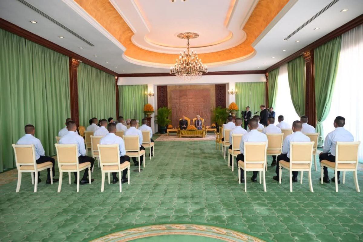 ព្រះកុរណាព្រះមហាក្សត្រ និងសម្តេចម៉ែ សព្វព្រះរាជហឬទ័យប្រោសព្រះរាជទានវីរកងទ័ពទាំង១៨រូប ដែលបាននិវត្តន៍មកកាន់មាតុប្រទេសវិញចូលក្រាបថ្វាយបង្គំគាល់