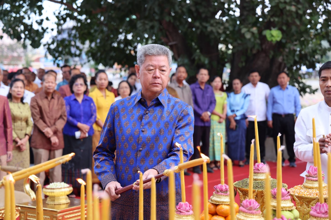 ក្នុងពិធីក្រុងពាលីបញ្ចុះបឋមសិលា និងបើកការដ្ឋានគម្រោងស្ថាបនាកែលម្អច្រាំងស្ទឹងព្រែកត្នោត ក្រោមអធិបតីឯកឧត្តម លី រស្មី រដ្ឋលេខាធិការក្រសួងរៀបចំដែនដី នគរូបនីយកម្ម និងសំណង់ ឯកឧត្តម នូ សាខន ប្រធានក្រុមប្រឹក្សាខេត្តកណ្តាល និងឯកឧត្តម គួច ចំរើន អភិបាល នៃគណៈអភិបាលខេត្តកណ្តាល នាព្រឹកថ្ងៃទី០៣ ខែមករា ឆ្នាំ២០២៦នេះ បានធ្វើឡើងតាមប្រពៃណីព្រះពុទ្ធសាសនា ដើម្បីសុំសេចក្ដីសុខ សេចក្ដីចម្រើន ក្នុងការអនុវត្តគម្រោងកែលម្អស្ថាបនាសាងសង់ច្រាំងស្ទឹងនេះ ឱ្យទទួលបានជោគជ័យ និងមានសេចក្ដីសុខគ្រប់ៗគ្នា។