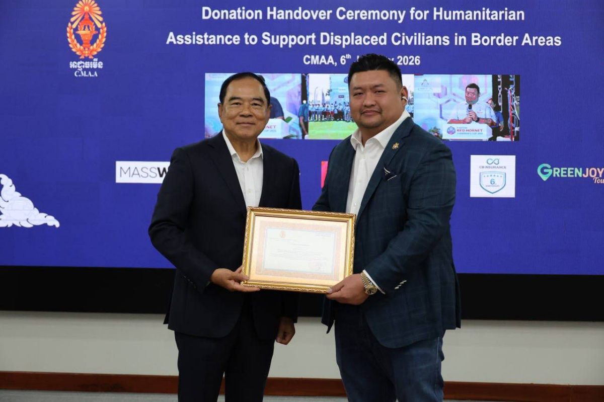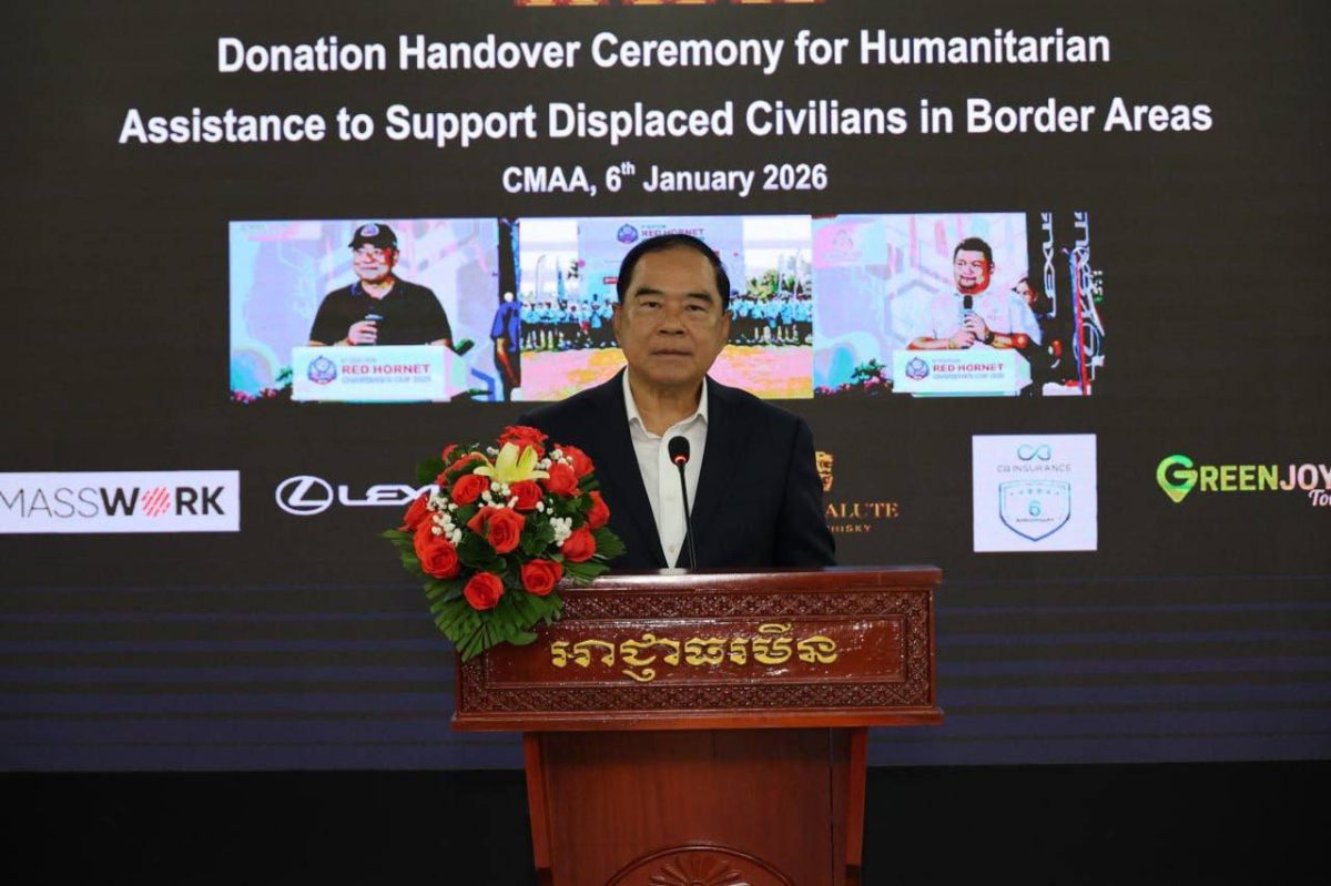 ការថ្លែងបែបនេះក្នុងខណះឯកឧត្តមបណ្ឌិត លី ធុជ ទេសរដ្ឋមន្រ្តី និងជាអនុប្រធានទី១ អាជ្ញាធរមីន ទទួលថវិកាសប្បុរសធម៌មកពីក្រុមហ៊ុនឯកជនចំនួន ៦រួមមាន ៖ ក្រុមហ៊ុន MAS SWORK CO.,LTD, ក្រុមហ៊ុន CB INSURANCE PLC.,ក្រុមហ៊ុន REPRE SENTATIVE OFFICE OF PERNOD RICARD SINGAPORE PTE. LTD,ក្រុមហ៊ន TOYOTA (CAMBODIA) CO., LTD, ក្រុមហ៊ុន Tian Xu International Technology Plc. (CoolCash), និងក្រុមហ៊ុន GREEN VACATION CO., LTD ដែលដឹកនាំដោយ លោក Dalton Wong ប្រធាន IndoCham Cambodiaនាថ្ងៃទី០៦ ខែមករា ឆ្នាំ២០២៦នេះនៅអាជ្ញាធរមីន ដើម្បីរៀបចំសម្ភារៈ និងគ្រឿងឧបភោគបរិភោគ ឧបត្ថម្ភគាំទ្រដល់ប្រជាជនភៀសសឹកក្នុងអំឡុងពេលនៃវិបត្តិនៅតាមបណ្តោយព្រំដែនកម្ពុជា-ថៃ ដោយសារទង្វើឈ្លានពានរបស់យោធាថៃមកលើកម្ពុជា។