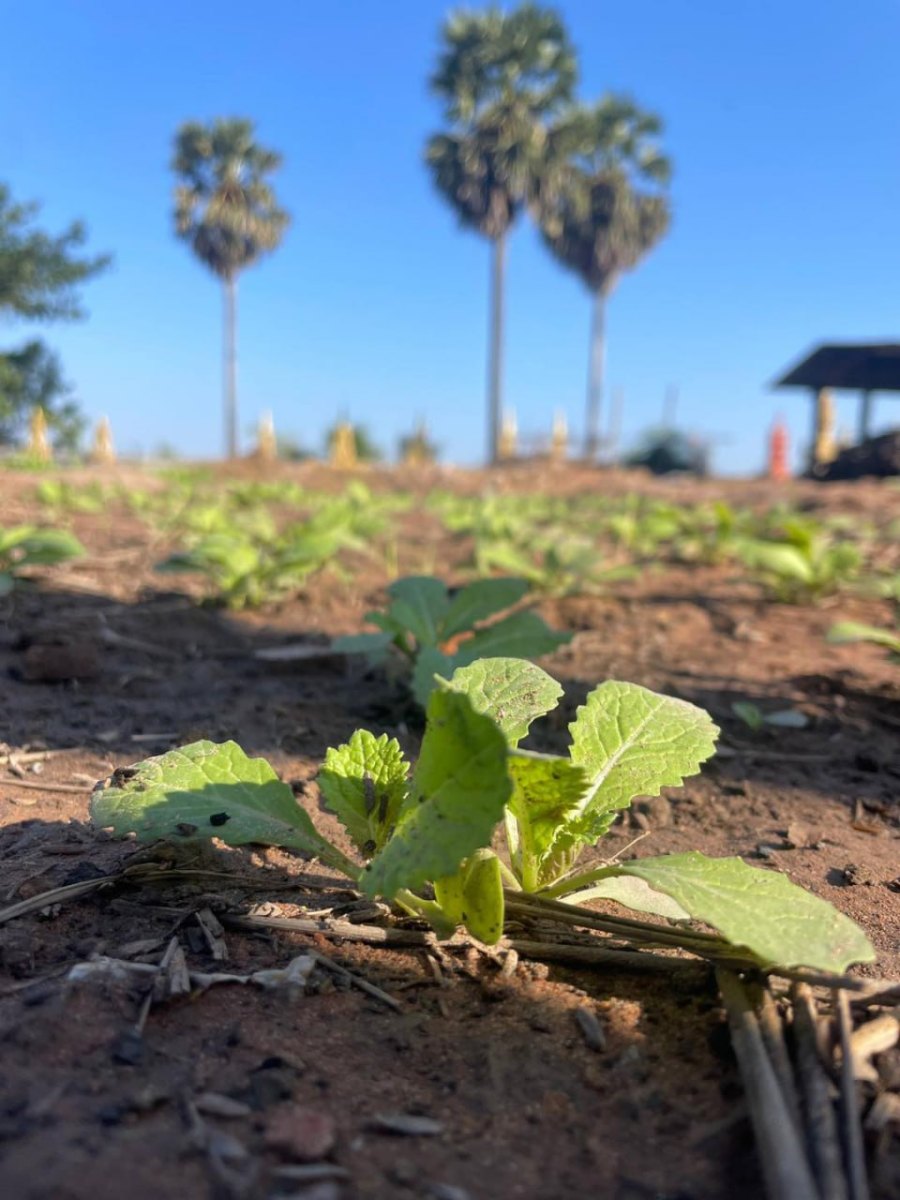 ការលូតលាស់ដំណាំបន្លែដែលបងប្អូនភៀសសឹក និងក្រុមការងាររដ្ឋបាលខេត្តសៀមរាប បានដាំនៅមណ្ឌលឈូករង្សី នឹងផ្ដល់ទិន្នផលឆាប់ៗនេះ