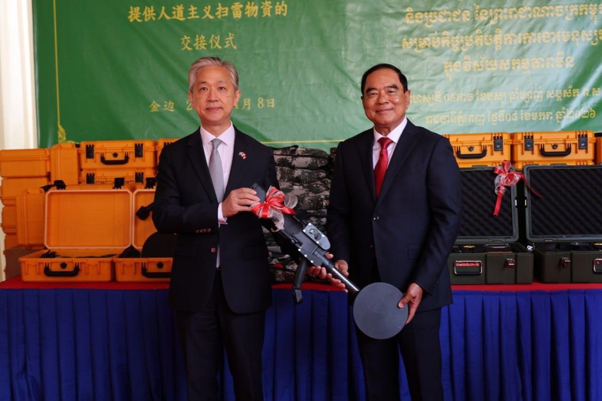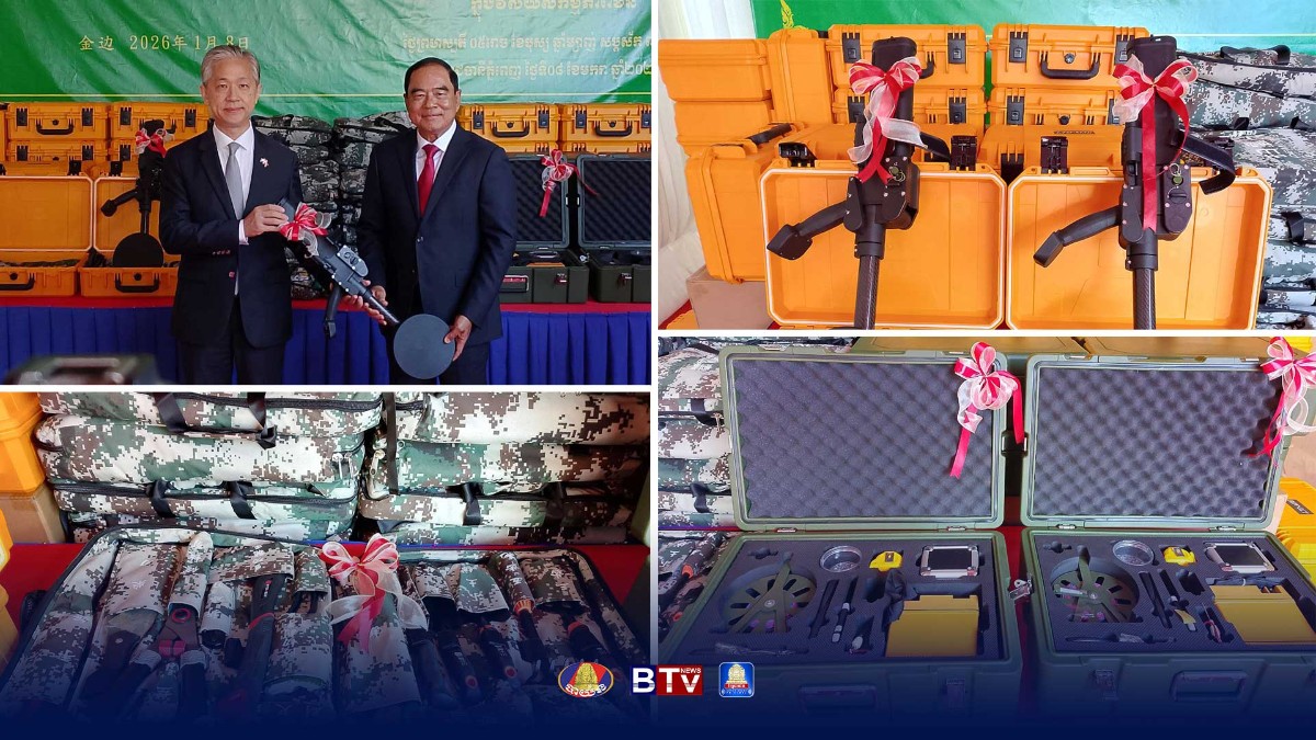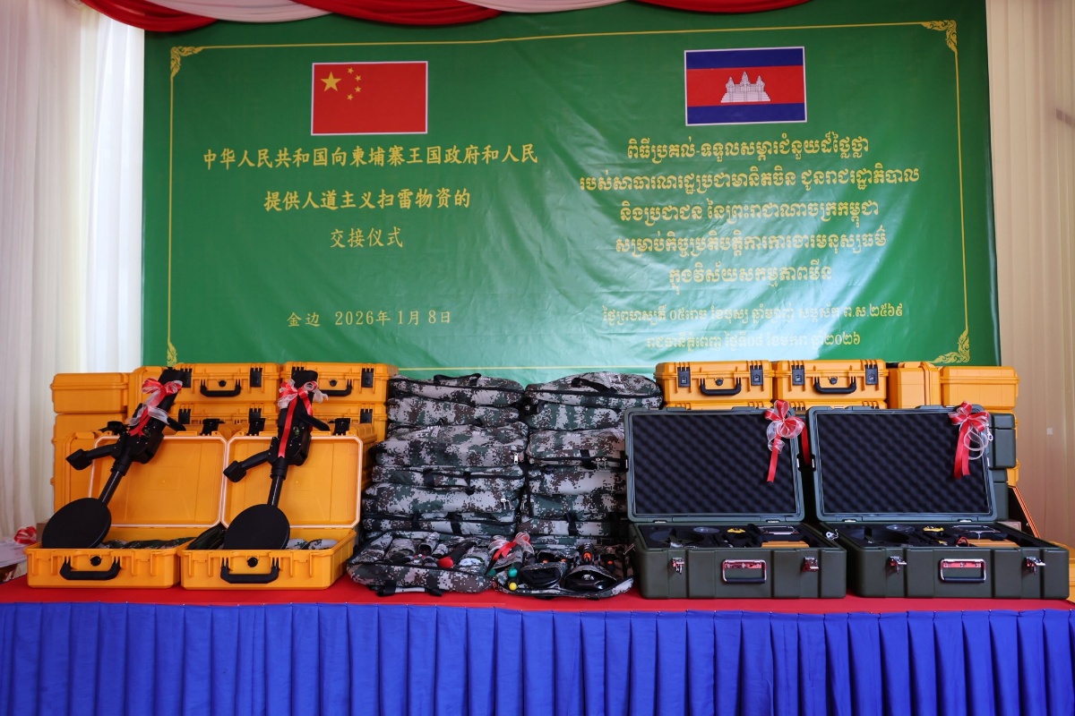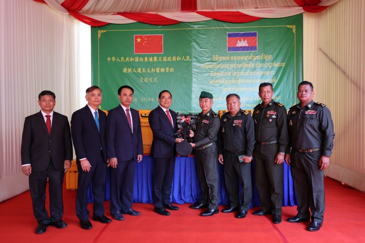 ថ្ងៃទី០៨ ខែមករា ឆ្នាំ២០២៦ នៅទីស្នាក់ការអាជ្ញាធរមីន ឯកឧត្តមបណ្ឌិត លី ធុជ ទេសរដ្ឋមន្រ្តី អនុ ប្រធានទី១ អាជ្ញាធរមីន និង ឯកឧត្តម វ៉ាង វិនពីន ឯកអគ្គរដ្ឋទូតនៃសាធារណរដ្ឋប្រជាមានិតចិន ប្រចាំនៅកម្ពុជា បានអញ្ជើញជាអធិបតីក្នុងពិធីប្រគល់-ទទួលសម្ភារដែលជាជំនួយរបស់រដ្ឋាភិបាលនៃសាធារណរដ្ឋប្រជាមានិតចិន សម្រាប់កិច្ចប្រតិបត្តិការការងារមនុស្សធម៌ក្នុងវិស័យសកម្មភាពមីននៅកម្ពុជា។ សម្ភារទាំងនោះ រួមមានឧបករណ៍រាវរកលោហៈ ឧបករណ៍និងសម្ភារចាំបាច់ និងរថយន្ត។