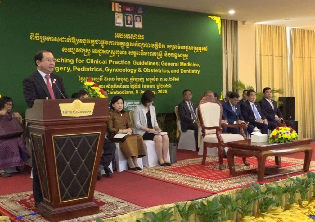 ឯកឧត្តមសាស្រ្តាចារ្យ ឈាង រ៉ា រដ្ឋមន្រ្តីក្រសួងសុខាភិបាល អញ្ជើញជាអធិបតីប្រកាសដាក់ឱ្យអនុវត្តជាផ្លូវការមគ្គុទ្ទេសក៍ព្យាបាលគ្លីនិក សម្រាប់វេជ្ជសាស្ត្រទូទៅ សល្យសាស្ត្រ វេជ្ជសាស្រ្តកុមារ សម្ភពនិងរោគស្ត្រី និងទន្តសាស្ត្រ, នាព្រឹកថ្ងៃព្រហស្បតិ៍ ទី៨ ខែមករា ឆ្នាំ២០២៦ ។