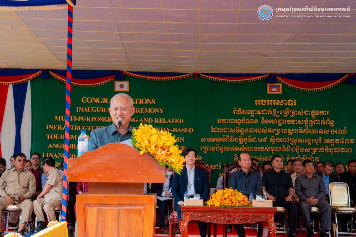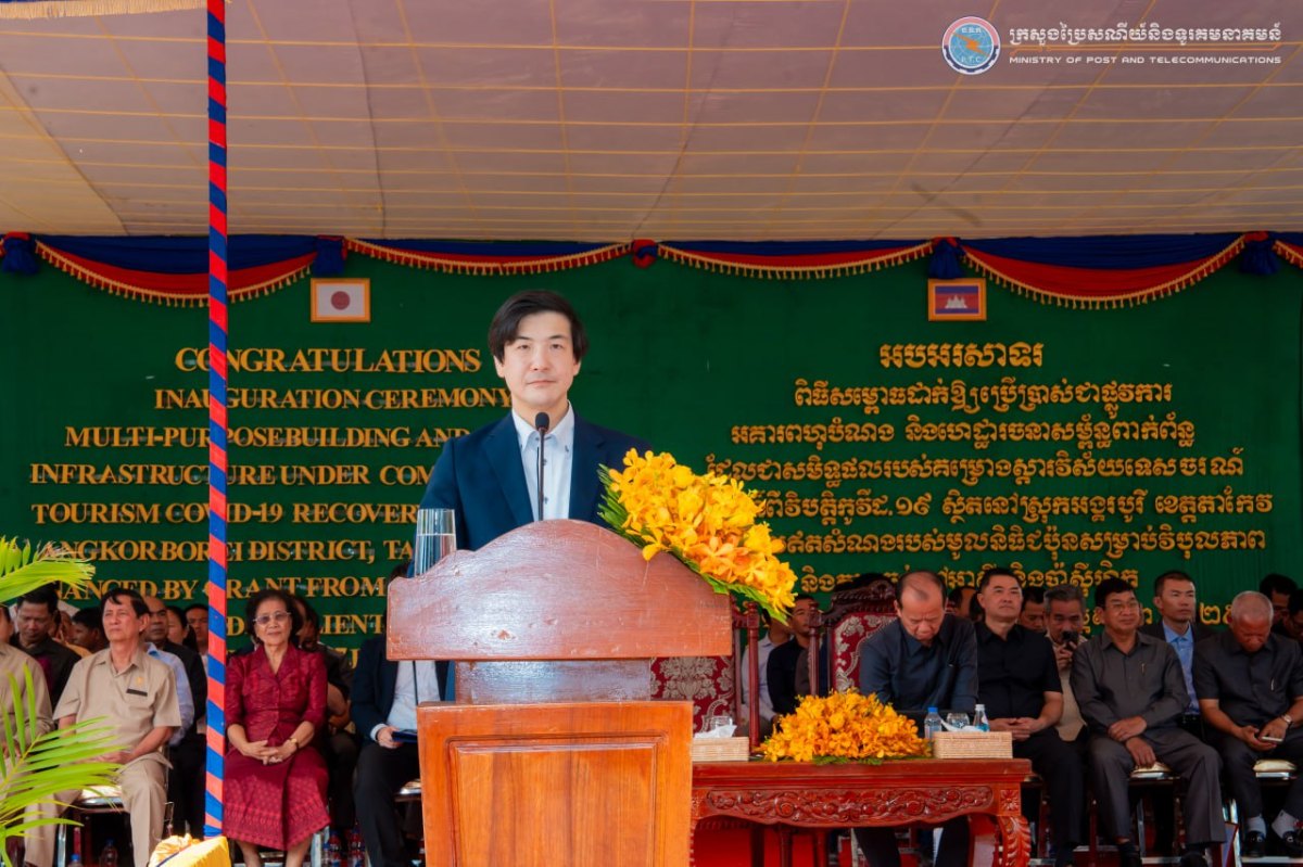 ខេត្តតាកែវ ៖ ព្រឹកថ្ងៃទី១៧ ខែមករា ឆ្នាំ២០២៦ ឯកឧត្តម ជា វ៉ាន់ដេត រដ្ឋមន្រ្តីក្រសួងប្រៃសណីយ៍និងទូរគមនាគមន៍ (ក.ប.ទ.) និងជាប្រធានក្រុមការងាររាជរដ្ឋាភិបាលចុះមូលដ្ឋានខេត្តតាកែវ និងលោក NAGASE Kensuke (ណាហ្គាសិ កេនស៊ូកិ) អនុប្រធានបេសកកម្មនៃស្ថានទូតជប៉ុនប្រចាំកម្ពុជា បានអញ្ជើញជាអធិបតីក្នុងពិធីសម្ពោធដាក់ឱ្យប្រើប្រាស់ជាផ្លូវការ “អគារពហុបំណង និងហេដ្ឋារចនាសម្ព័ន្ធពាក់ព័ន្ធ” ដែលជាសមិទ្ធផលរបស់គម្រោងស្តារវិស័យទេសចរណ៍សហគមន៍ពីវិបត្តិកូវីដ-១៩ នៅសាលាស្រុកអង្គរបូរី ខេត្តតាកែវ ដោយមានការនិមន្ត/ចូលរួមពីព្រះសង្ឃ ឯកឧត្តមអភិបាលនៃគណៈអភិបាលខេត្ត ឯកឧត្តម លោកជំទាវ សមាជិក សមាជិកា ព្រឹទ្ធសភា រដ្ឋសភា ឯកឧត្តម លោកជំទាវ ប្រធានក្រុមការងារក្រុង ស្រុក ភាគីពាក់ព័ន្ធ ប្រជាពលរដ្ឋក្នុងមូលដ្ឋាន លោកគ្រូ អ្នកគ្រូ និងសិស្សានុសិស្សប្រមាណ ១៤៥០ អង្គ/នាក់។
