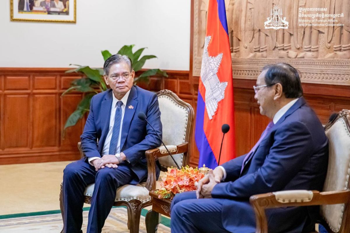 នៅព្រឹកថ្ងៃទី២០ ខែមករា ឆ្នាំ២០២៦ នៅទីស្តីការក្រសួង ឯកឧត្តម ប្រាក់ សុខុន ឧបនាយករដ្ឋមន្តី រដ្ឋមន្ត្រីការបរទេស និងសហប្រតិបត្តិការអន្តរជាតិ បានអនុញ្ញាតឱ្យ ឯកឧត្ដម បូរ ភូមិវង្សសៃ ឯកអគ្គរដ្ឋទូតវិសាមញ្ញ និងពេញសមត្ថភាពនៃសាធារណរដ្ឋប្រជាធិបតេយ្យប្រជាមានិតឡាវ ប្រចាំព្រះរាជាណាចក្រកម្ពុជា ចូលជួបសម្តែងការគួរសម និងជម្រាបលា ក្នុងឱកាសដែល ឯកឧត្តមឯកអគ្គរដ្ឋទូត បានបញ្ចប់បេសកកម្មការទូតនៅកម្ពុជា រយៈពេល ៤ឆ្នាំ ដោយជោគជ័យ។