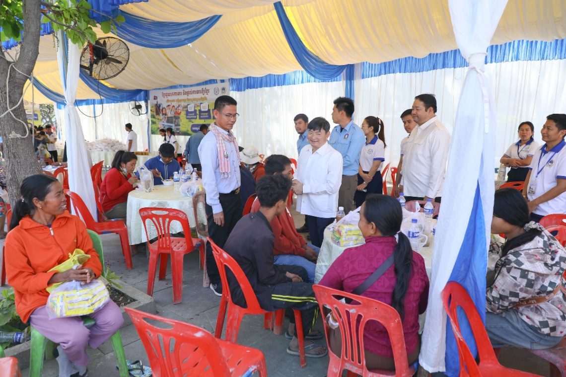 ឯកឧត្តម ហេង សួរ រដ្ឋមន្រ្តីក្រសួងការងារ និងបណ្តុះបណ្តាលវិជ្ជាជីវៈបានមានប្រសាសន៍ ក្នុងពិធីជួបសំណេះសំណាលជាមួយបងប្អូននាឱកាសនោះថា នេះជាវេទិកាជំនួបដ៏ធំមួយរវាងអ្នកស្វែងរកការងារ និងនិយោជក ដើម្បីដាក់ពាក្យស្វែងរកការងារ ជ្រើសរើសបុគ្គលិក សម្ភាស និងទទួលបានការងារភ្លាមៗនៅមូលដ្ឋានផ្ទាល់តែម្តង តាមរយៈក្រុមហ៊ុនធំៗទាំង៤ ដែលត្រូវការកម្លាំងពលកម្មបន្ថែមចំនួន ២ ៦៥០កន្លែង ដើម្បីកុំឱ្យបងប្អូនពិបាកចំណាយពេលវេលា និងថវិកាក្នុងការធ្វើដំណើរទៅឆ្ងាយ។