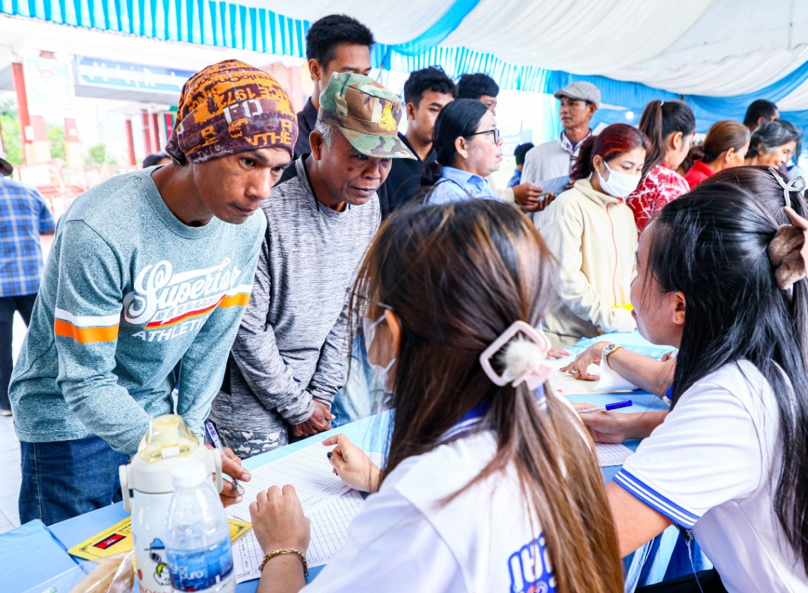 សហគ្រាស ក្រុមហ៊ុន រោងចក្រធំៗចំនួន ៤ ចូលរួមសម្ភាសជ្រើសរើសបុគ្គលិកដោយផ្ទាល់នៅក្នុងវេទិកាការងារ សន្តិសុខសង្គម និងបណ្តុះបណ្តាលវិជ្ជាជីវៈ ក្រោមប្រធានបទ «ខ្មែរជួយរកការងារ និងផ្ដល់ការងារឱ្យខ្មែរ» នាព្រឹកថ្ងៃទី២៤ ខែមករា ឆ្នាំ២០២៦ នៅបរិវេណសួនមានជ័យ ក្នុងក្រុងសិរីសោភ័ណ ខេត្តបន្ទាយមានជ័យមានបងប្អូនពលករ និងយុវជនចូលរួមប្រមាណ៧០០នាក់។