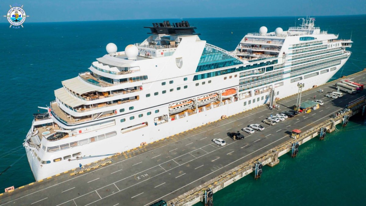 នាវាទេសចរណ៍មួយគ្រឿងសញ្ជាតិ BAHAMAS ដឹកភ្ញៀសទេសចរ និងនាវិកជិត១ពាន់នាក់ចូលសំចតនៅកំពង់ផែខេត្តព្រះសីហនុដើម្បីទស្សនាប្រទេសកម្ពុជា