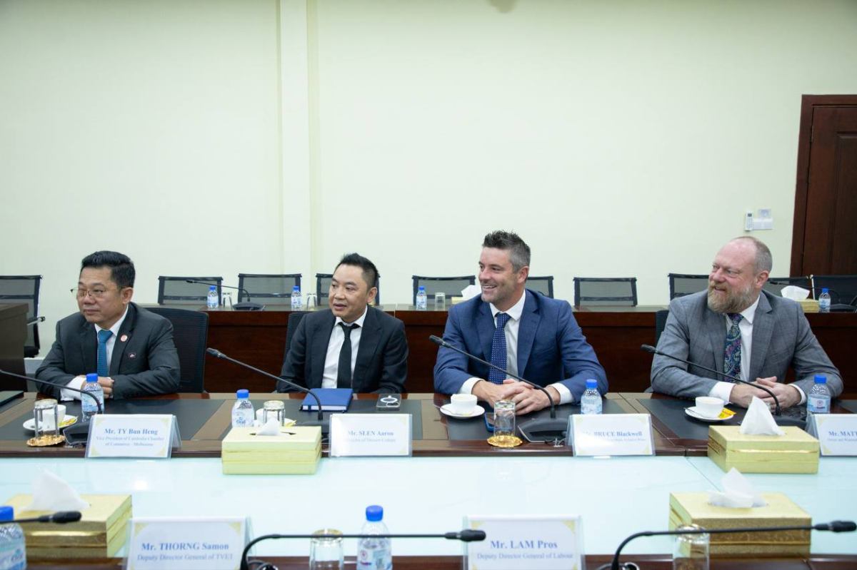 ក្រសួងការងារ និងបណ្ដុះបណ្ដាលវិជ្ជាជីវៈ នៅពេលខាងមុខនេះ គ្រោងនឹងចុះអនុស្សរណៈនៃការយោគយល់គ្នា (MoU) ជាមួយសភាពាណិជ្ជកម្មកម្ពុជាប្រចាំទីក្រុងម៉ែលប៊ន និងសភាពាណិជ្ជកម្ម អូស្រ្តាលី ដើម្បីពង្រឹងកិច្ចសហការលើវិស័យការងារ និងអភិវឌ្ឍធនធានមនុស្សនៅកម្ពុជា។
