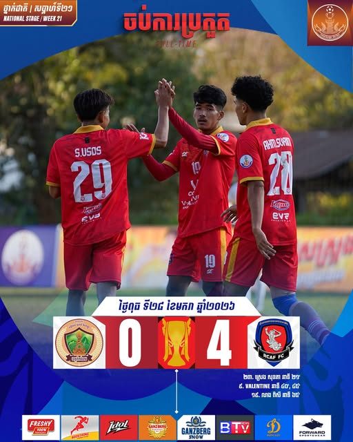 ក្រុមគិរីវង់សុខសែនជ័យ, អាយអេសអាយ ដង្កោសែនជ័យ និងក្រុមឡាយហ្វខេត្តព្រះសីហនុ បានបង្កព្យុះភ្លៀងក្នុងពានរង្វាន់សម្ដេចអគ្គមហាសេនាបតីតេជោ ហ៊ុន សែន លើកទី១៩ (ថ្នាក់ជាតិ) ឆ្នាំ២០២៥/២៦ បន្ទាប់ពីបានយកឈ្នះក្រុមសមាជិកលីគកំពូលកម្ពុជាដូចគ្នា ក្នុងជើងទី១ នៃវគ្គ ១៦ក្រុមចុងក្រោយ ស្របពេលក្រុមកងយោធពលខេមរភូមិន្ទ បានយកឈ្នះក្រុមជើងឯកពានរង្វាន់សម្ដេចតេជោ ហ៊ុន សែន-ថ្នាក់ខេត្ត មន្ទីរអប់រំ យុវជន និងកីឡា ខេត្តកំពង់ចាម ៤-០ កាលពីល្ងាចថ្ងៃទី២៨ ខែមករា ឆ្នាំ២០២៦។
