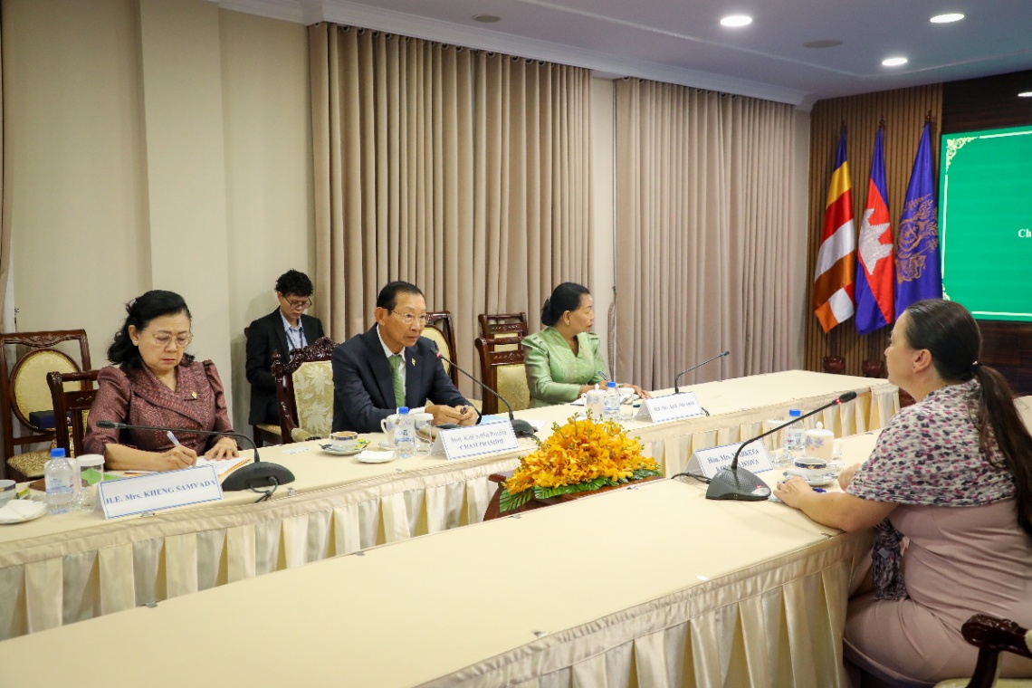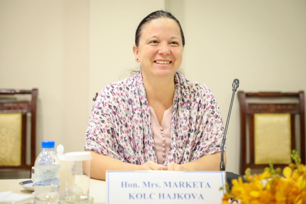ឯកឧត្តមកិត្តិសេដ្ឋាបណ្ឌិត ចម ប្រសិទ្ធ ឧត្តមទីប្រឹក្សាផ្ទាល់ព្រះមហាក្សត្រ នៃព្រះរាជាណាចក្រកម្ពុជា និងជាប្រធានក្រុមមិត្តភាពរដ្ឋសភាកម្ពុជា- ឆែក នាព្រឹកថ្ងៃទី២៩ ខែមករា ឆ្នាំ២០២៦ បានជួបពិភាក្សាការងារជាមួយលោកជំទាវ ម៉ាកេតា កូល ហៃកូវ៉ា (Markéta Kolc Hájková) ឯកអគ្គរដ្ឋទូតឆែកនៅវិមានរដ្ឋសភា។
