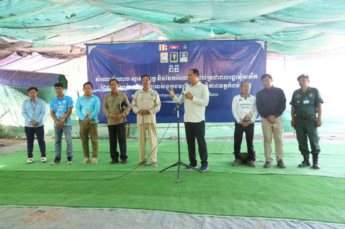 ពិធីប្រគល់អំណោយជូនប្រជាពលរដ្ឋភៀសឹកក្នុងមួយគ្រួសារទទួលបានអង្ករចំនួន ៥០គីឡូក្រាម, មី មួយកេសធំ, ត្រីខ មួយកេស និងថវិកាចំនួន ១,០០០.០០០រៀល៕